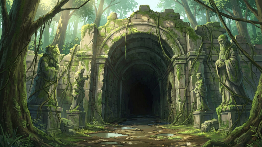 苔むした石造りのダンジョンの入り口(3枚)