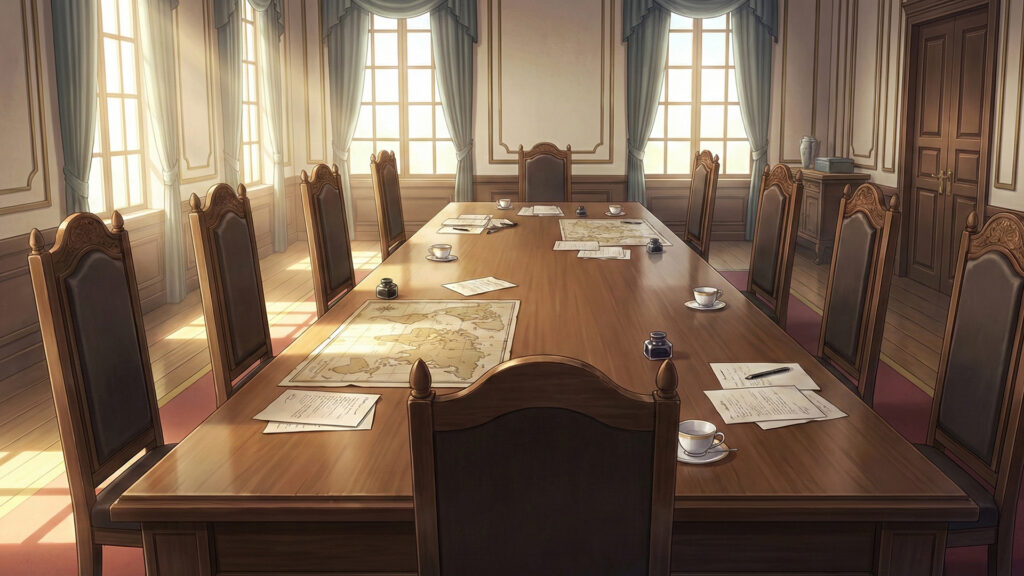 議論を行う洋館のダイニングテーブル(3枚)
