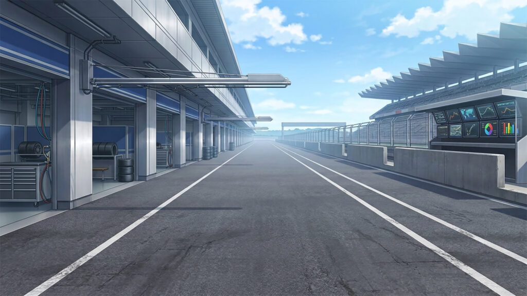 サーキット場のピットレーン|差分あり(3枚)