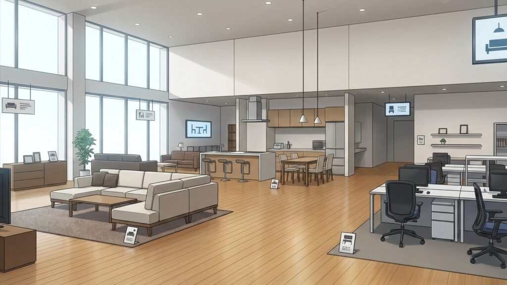 家具の新製品展示場(3枚)