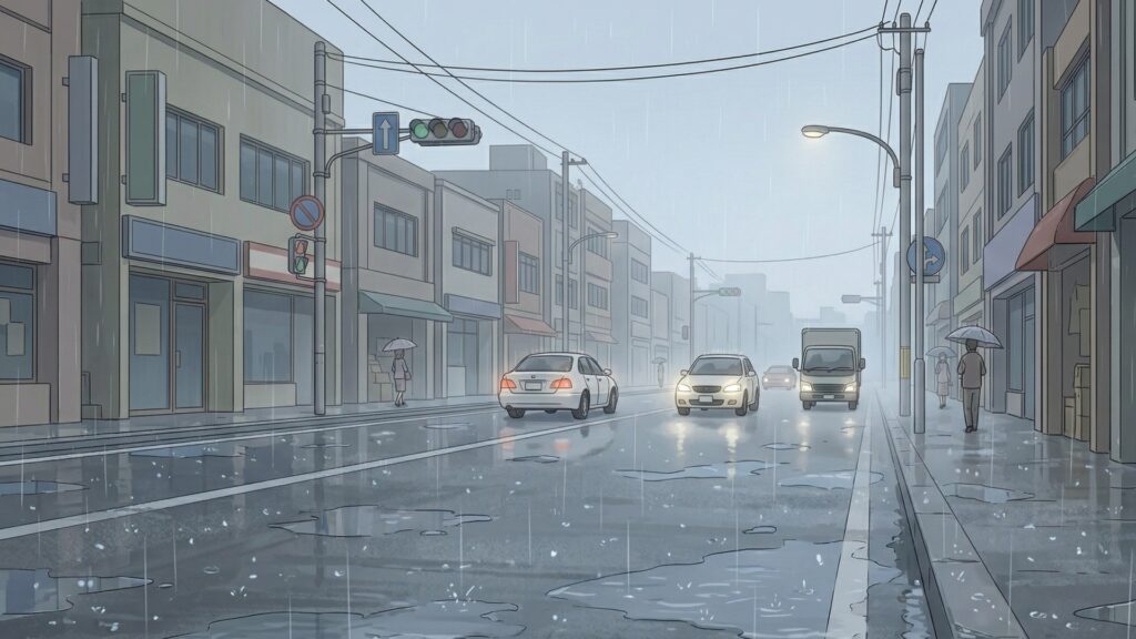 雨の日の車道(3枚)