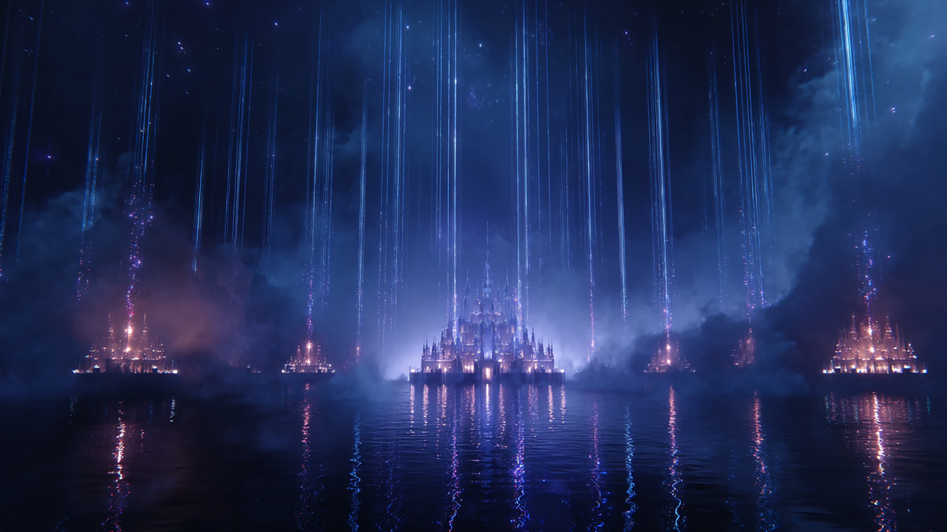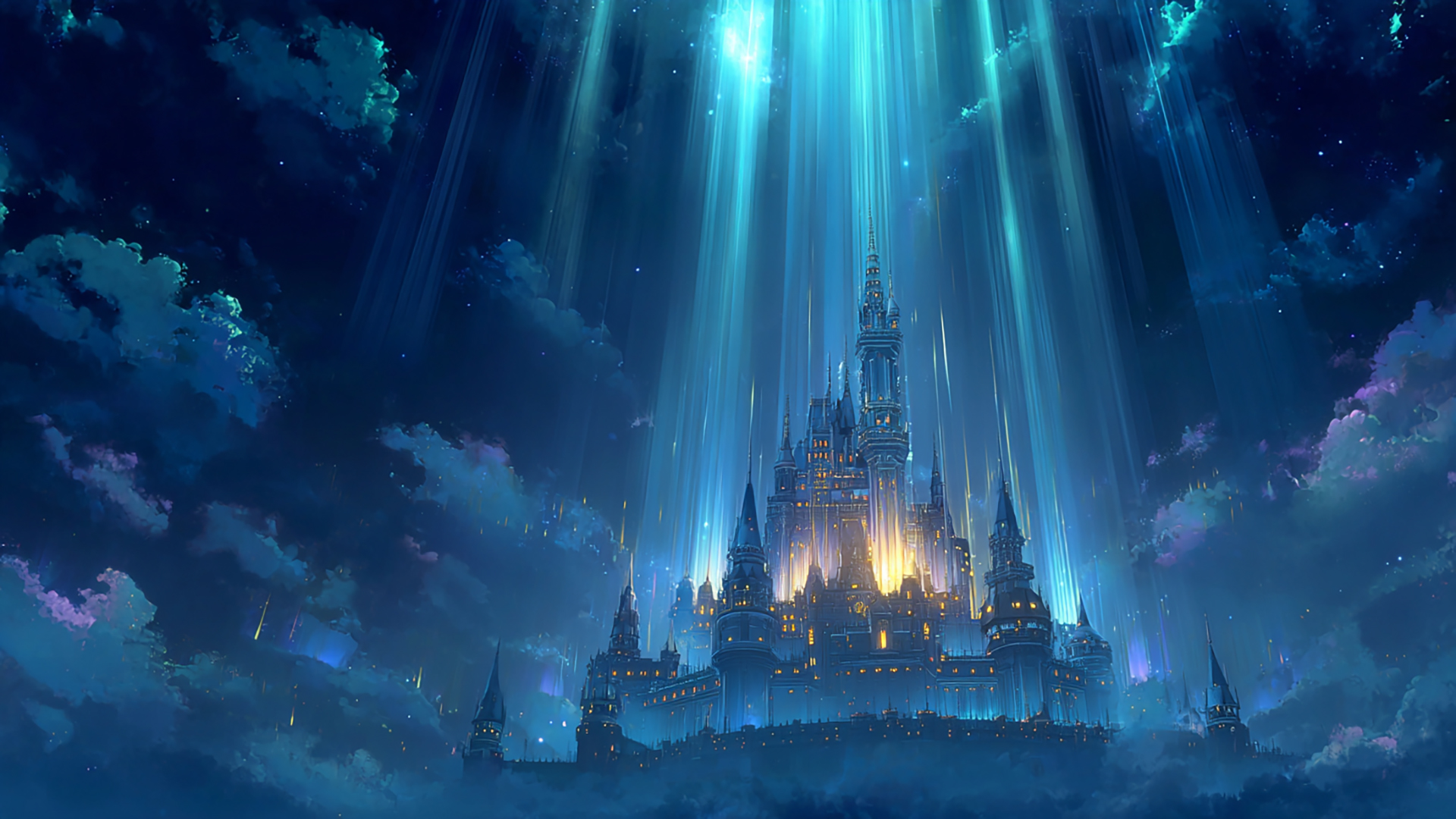 光の柱が貫く天空城(4枚)