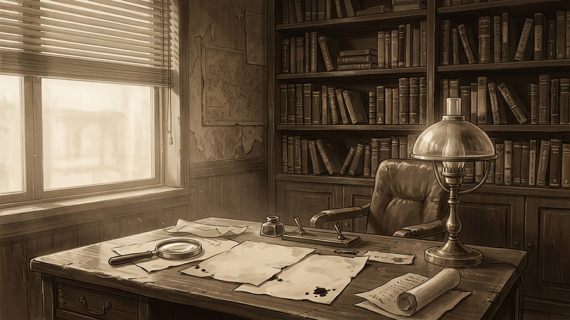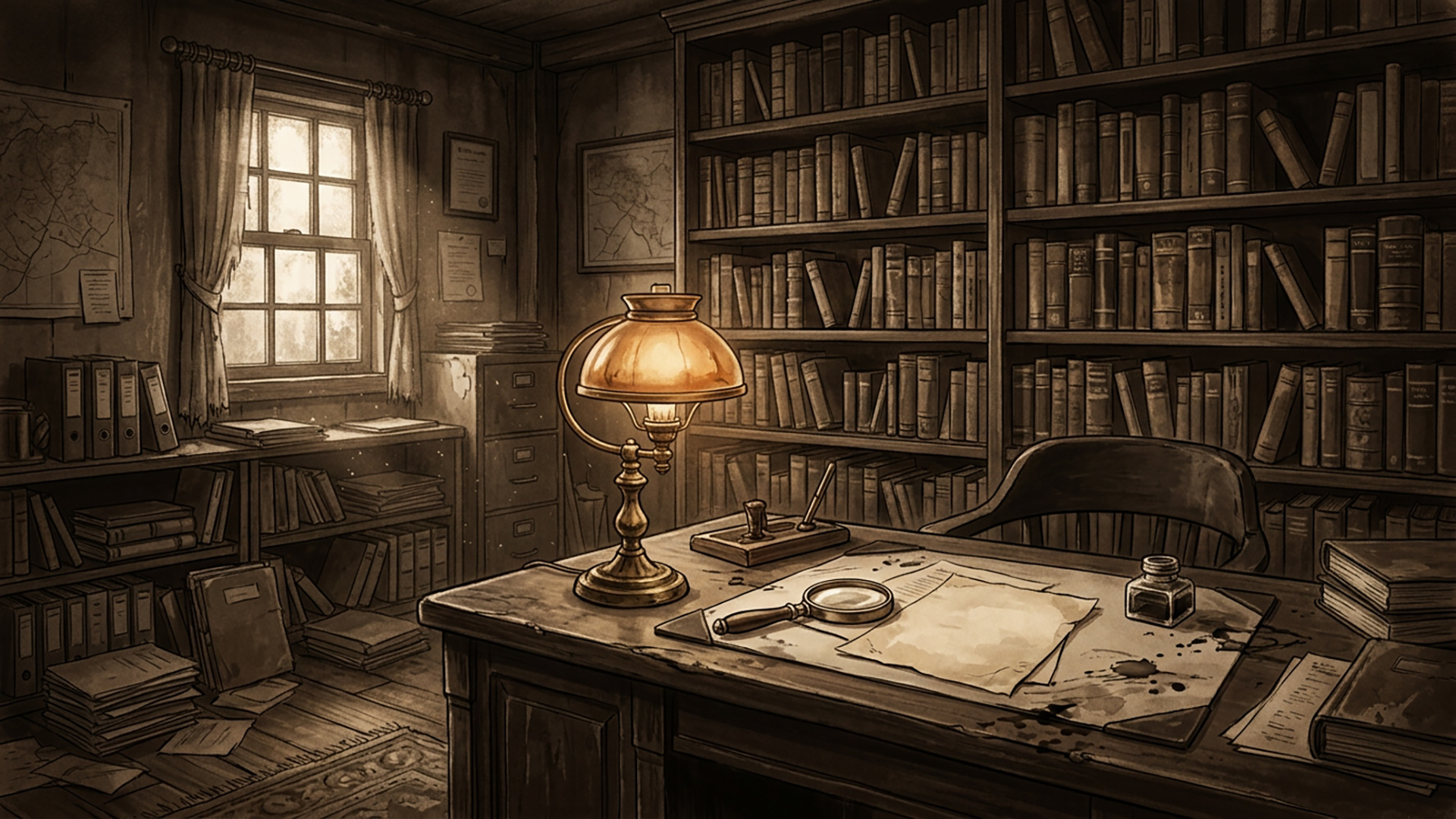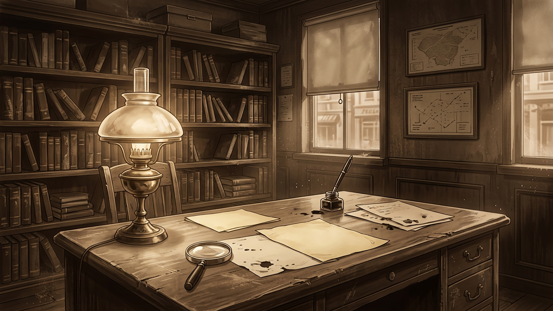 検索キーワード:探偵, 机, 1920年代, セピア, タイプライター, 書類, Detective, Desk, 1920s, Sepia, Typewriter, Documents