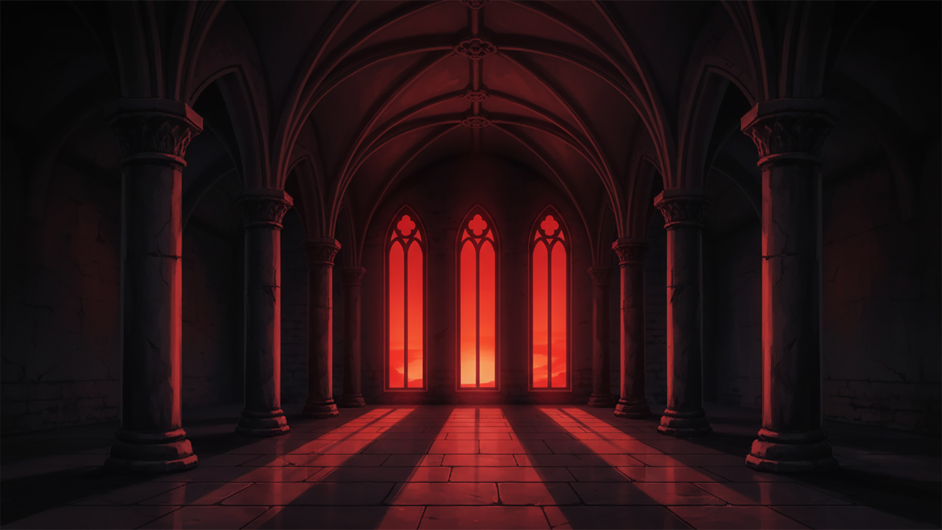 検索キーワード:赤い光, ゴシック, 荘厳, 教会, 影, Red light, Gothic, Solemn, Church, Shadows