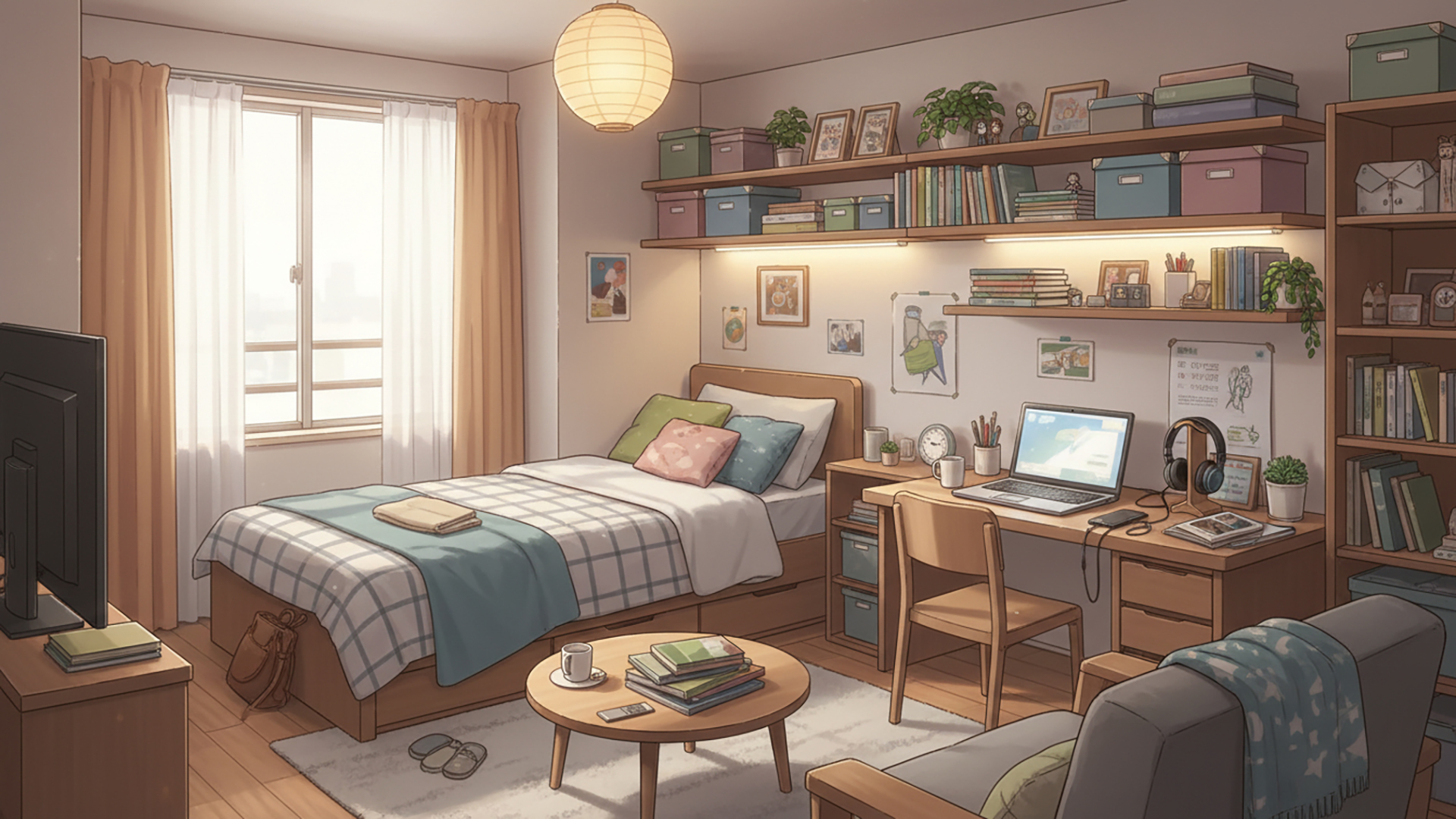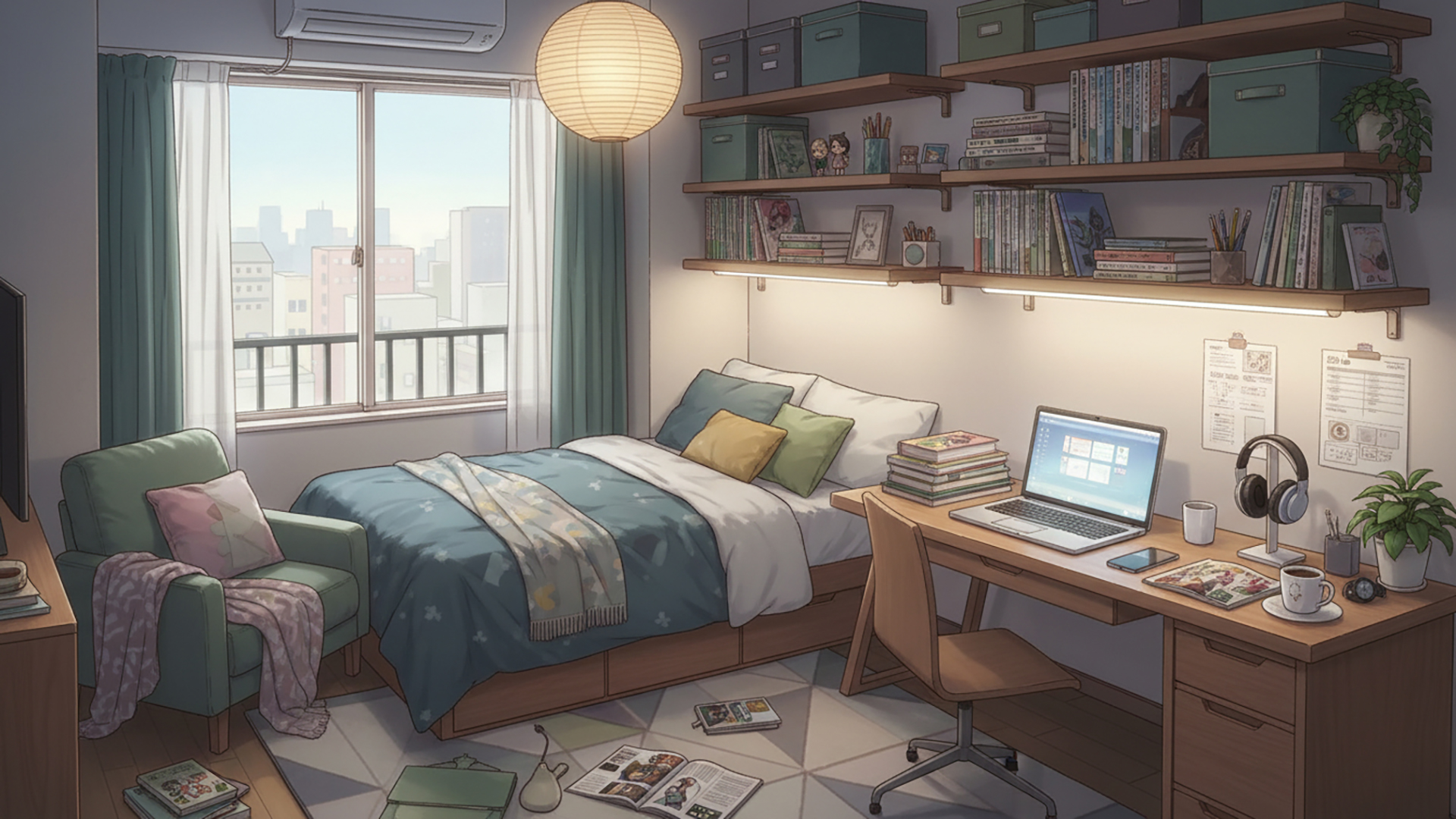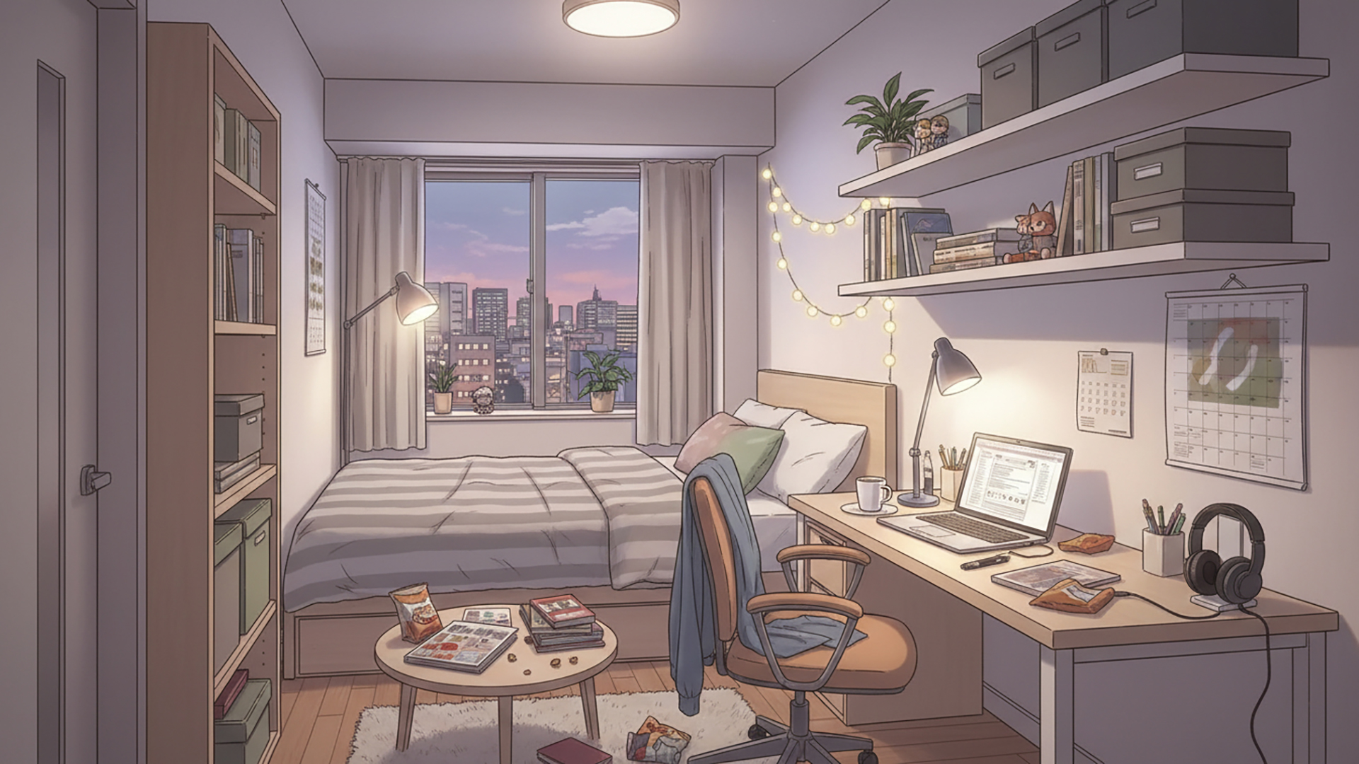 検索キーワード:一人暮らし, 部屋, 生活感, 室内, 日常, アパート, Apartment, Room, Studio, Lifestyle, Indoor, Living