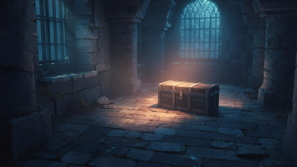検索キーワード:宝箱, 部屋, 冒険, ファンタジー, 隠し財宝, ダンジョン, treasure chest, room, adventure, fantasy, hidden treasure, dungeon
