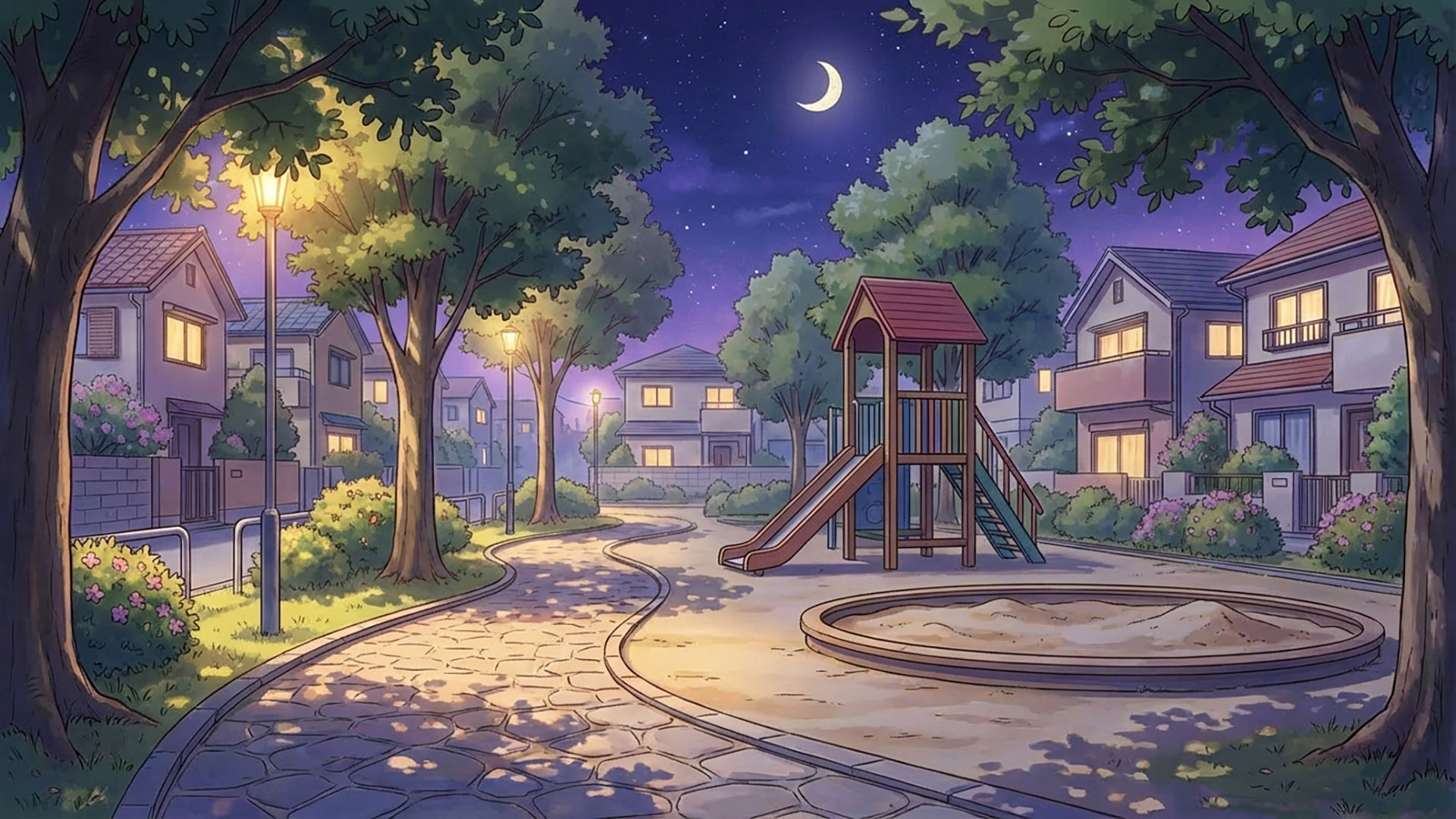 検索キーワード:公園, 小さな公園, 住宅街, 街並み, 遊び場, 遊具, ベンチ, 日常, のどか, 差分, Park, Small Park, Residential Area, Neighborhood, Playground, Bench, Everyday Life, Peaceful, Variation