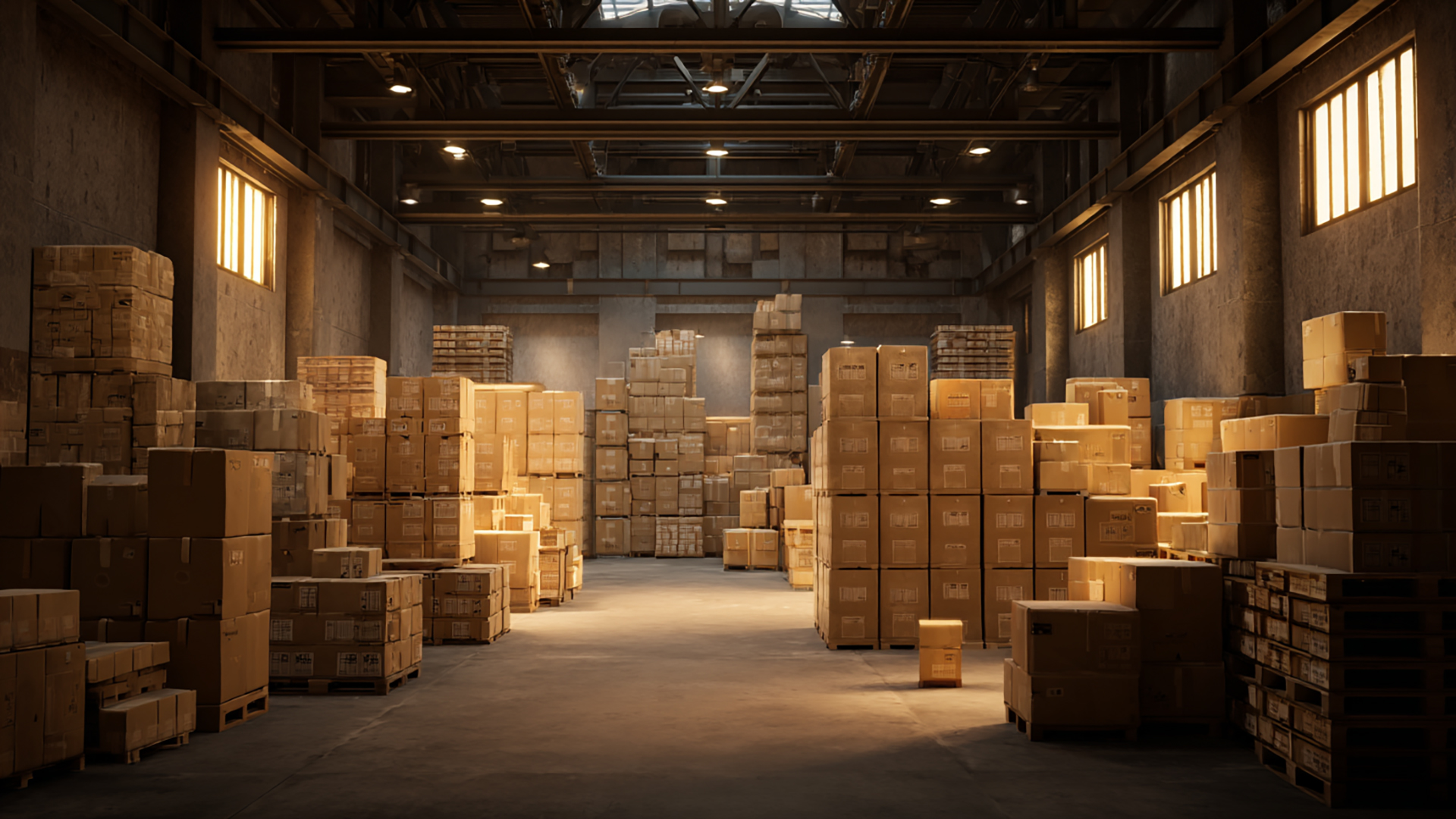 ダンボールが積まれた倉庫(4枚)