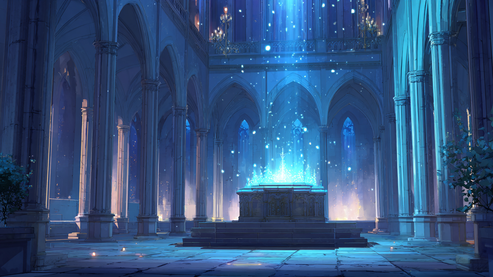 検索キーワード:青い光, 祭壇, 魔法, 神秘, ファンタジー, 儀式, blue light, altar, magic, mystical, fantasy, ritual