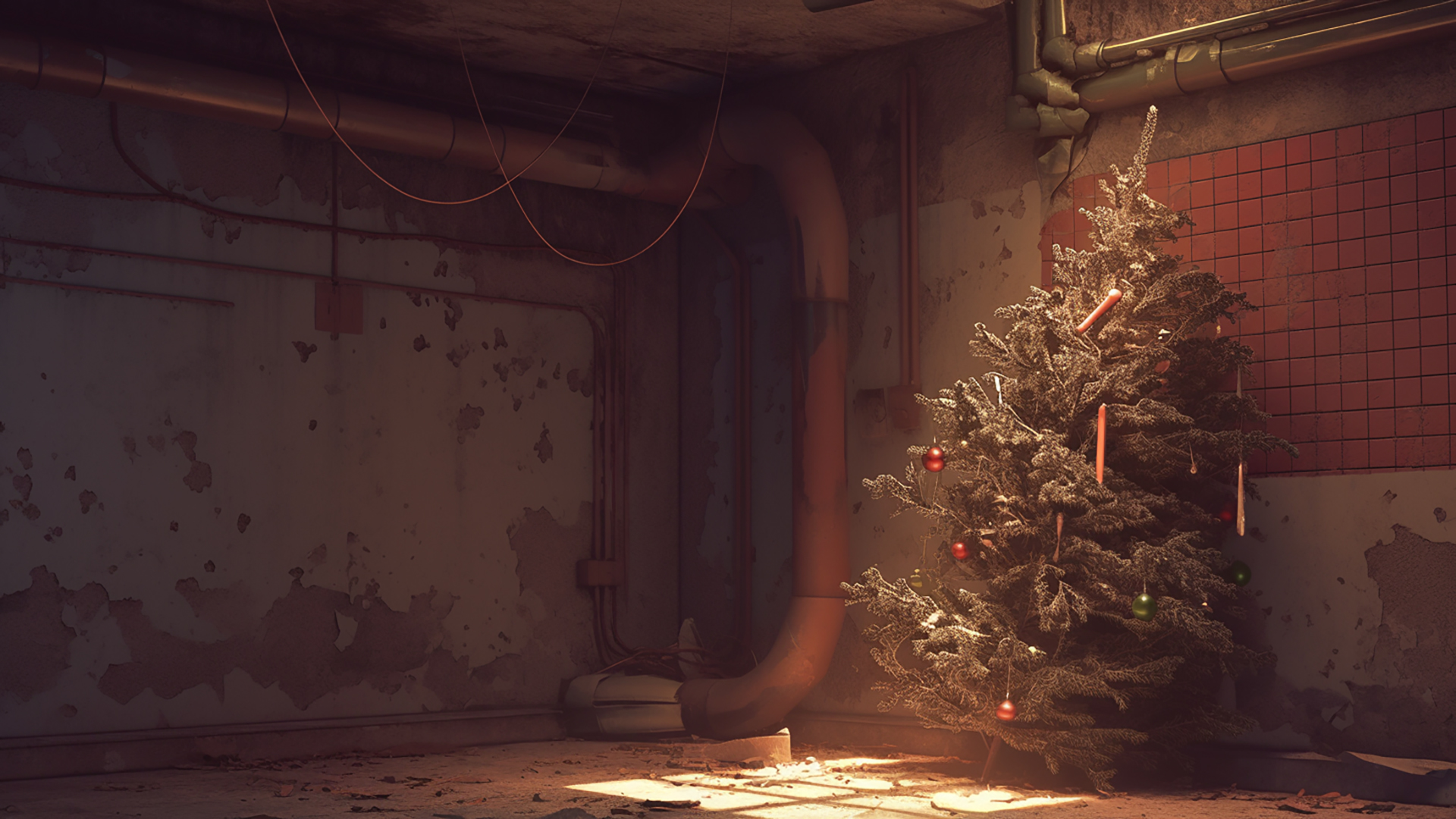 検索キーワード:地下室,古いクリスマスツリー,片隅,暗闇,埃,静寂, basement, old Christmas tree, corner, darkness, dust, silence