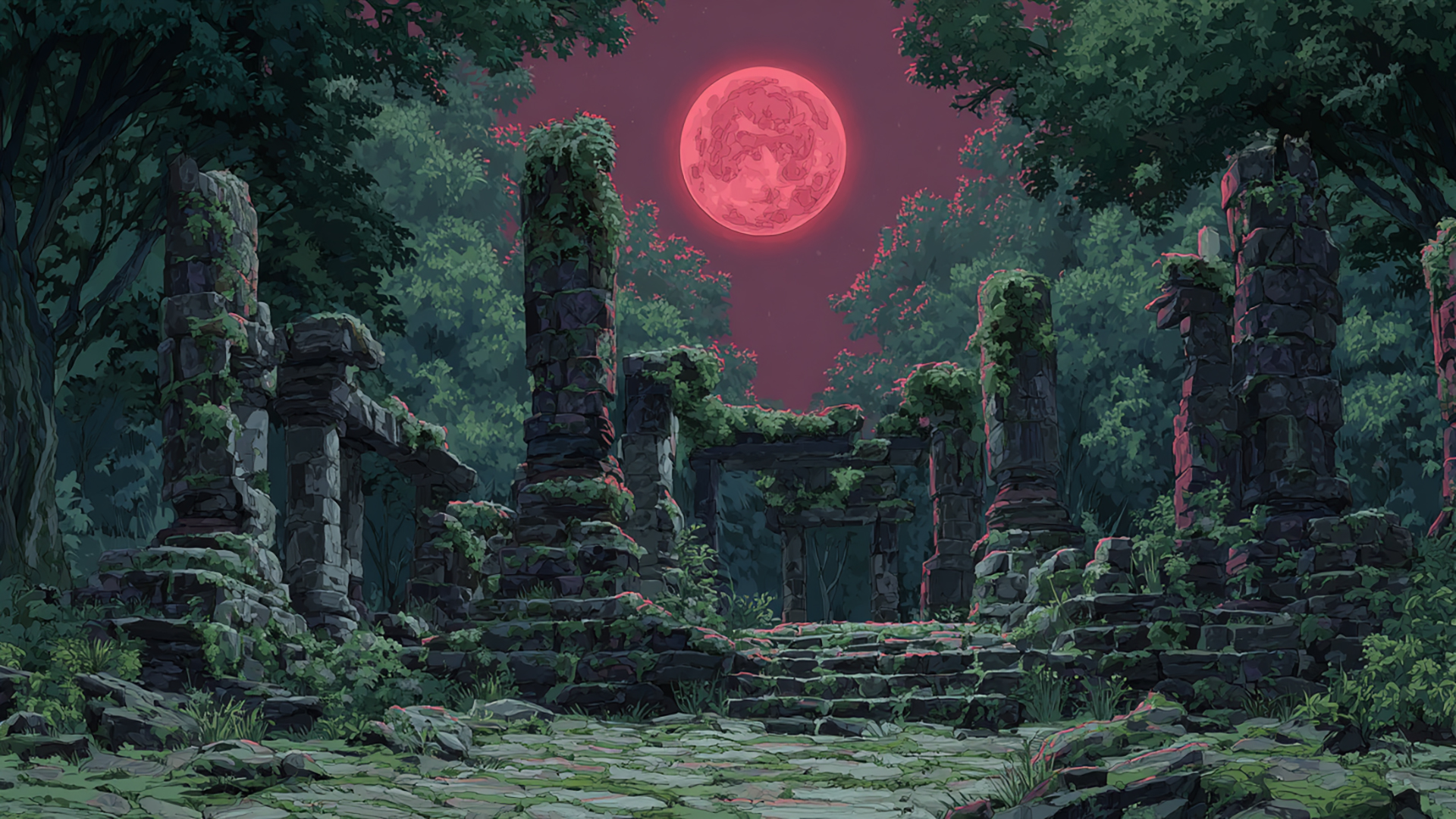 検索キーワード:森, 古代遺跡, 月食, 異世界, 神秘, ダークファンタジー, forest, ancient ruins, lunar eclipse, another world, mystery, dark fantasy