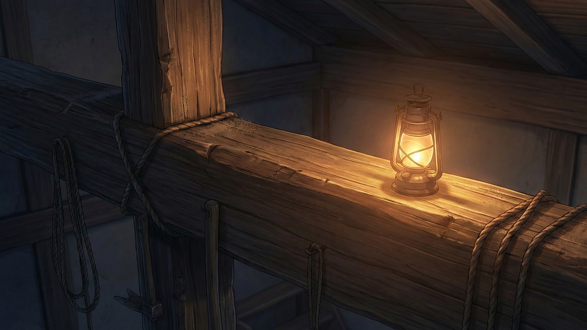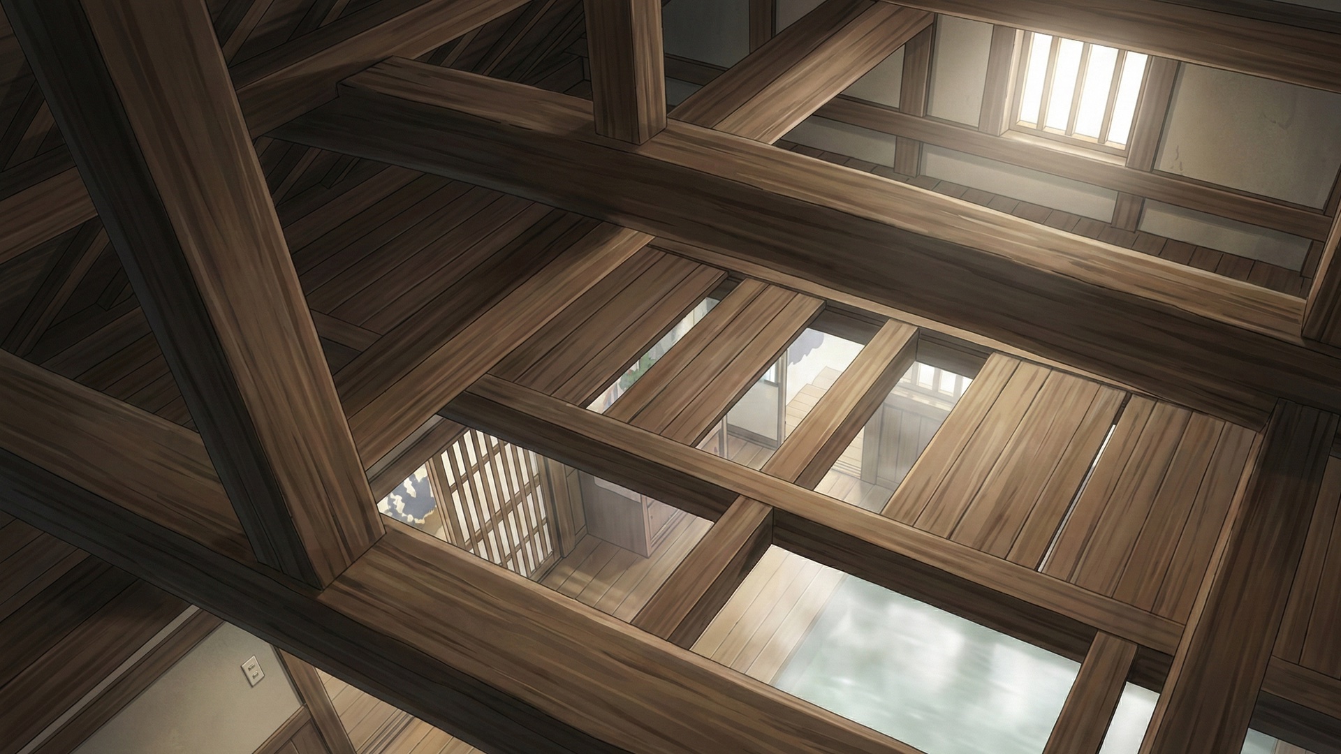 温泉旅館の屋根裏・梁(はり)の上(3枚)