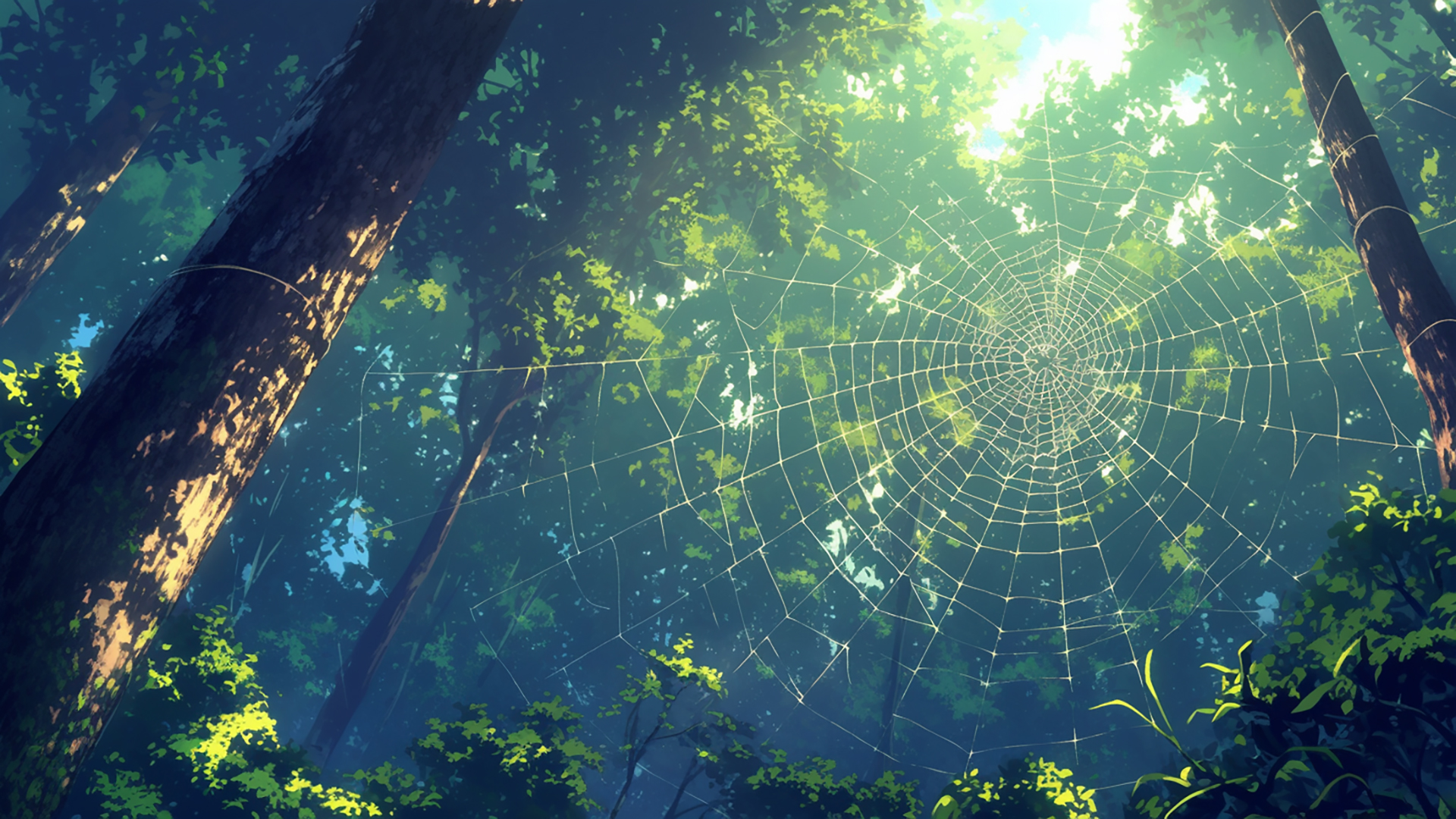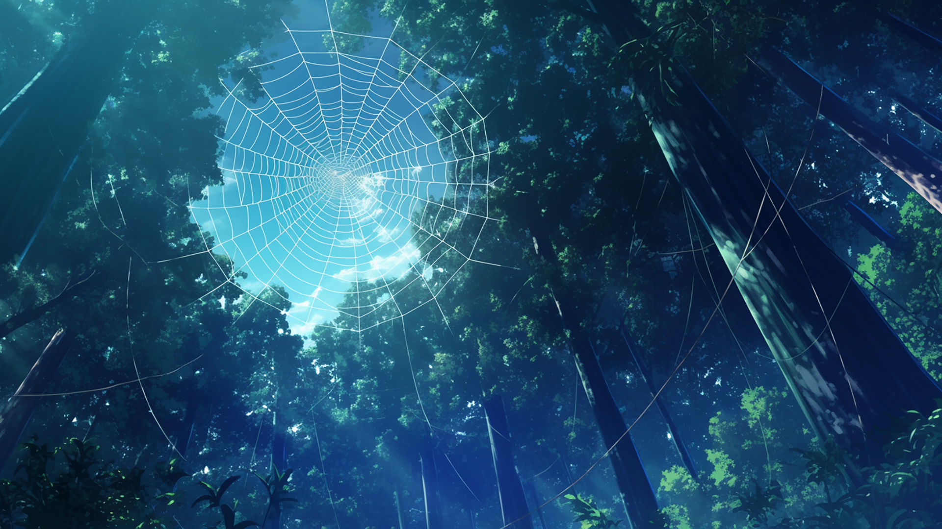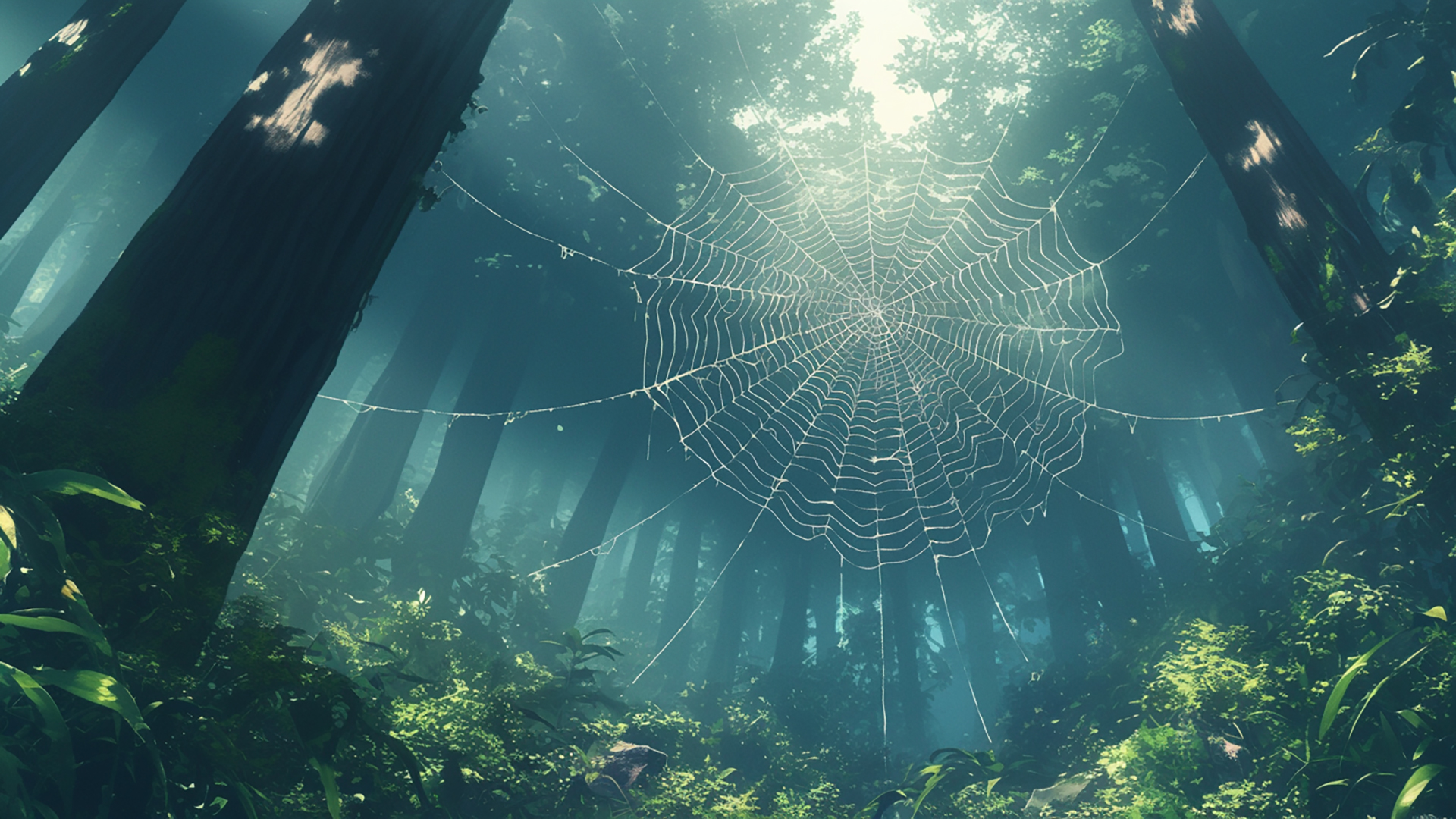 検索キーワード:森,巨大蜘蛛の巣,不気味,静寂,罠,薄暗い, forest, giant spider web, eerie, silence, trap, dim