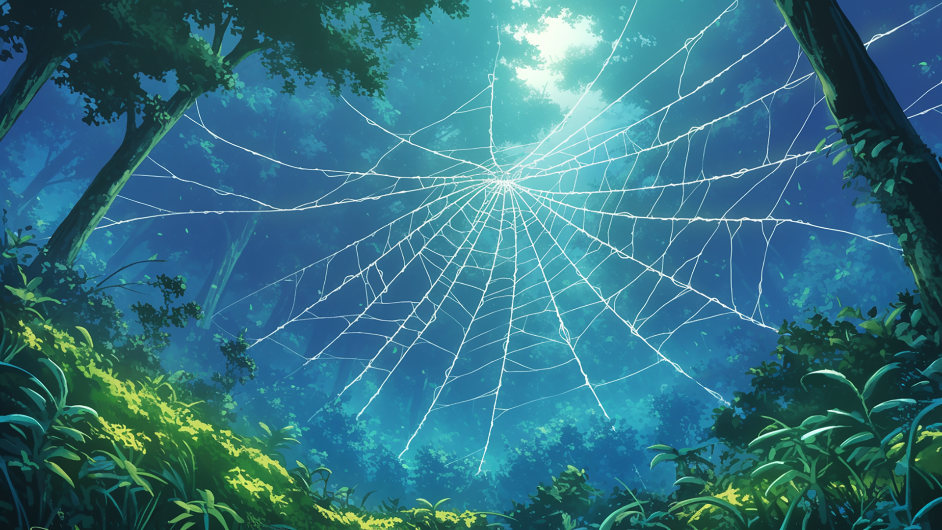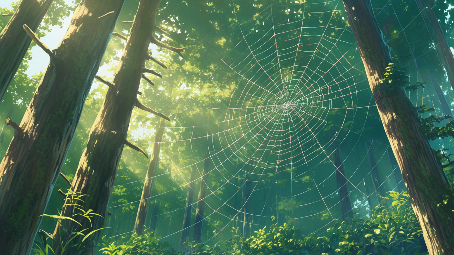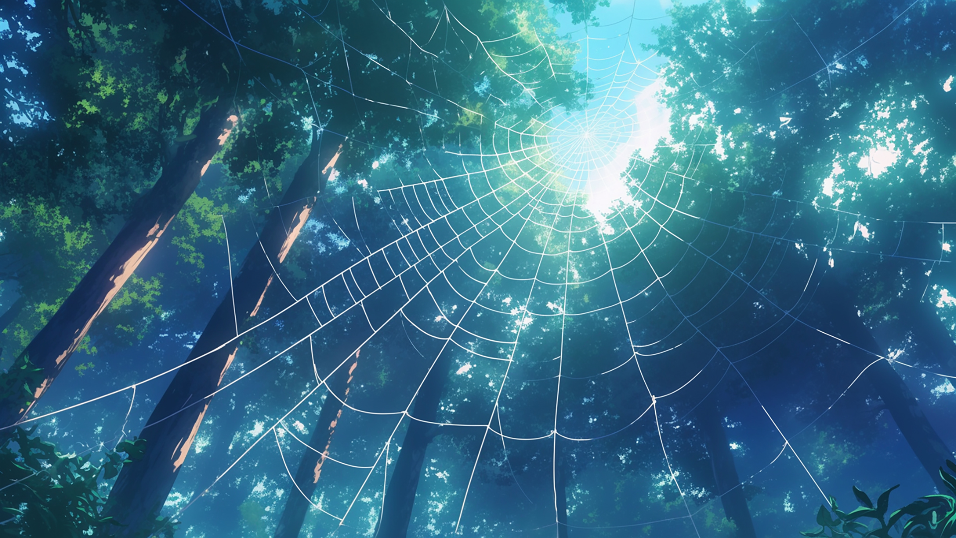 検索キーワード:森,巨大蜘蛛の巣,不気味,静寂,罠,薄暗い, forest, giant spider web, eerie, silence, trap, dim