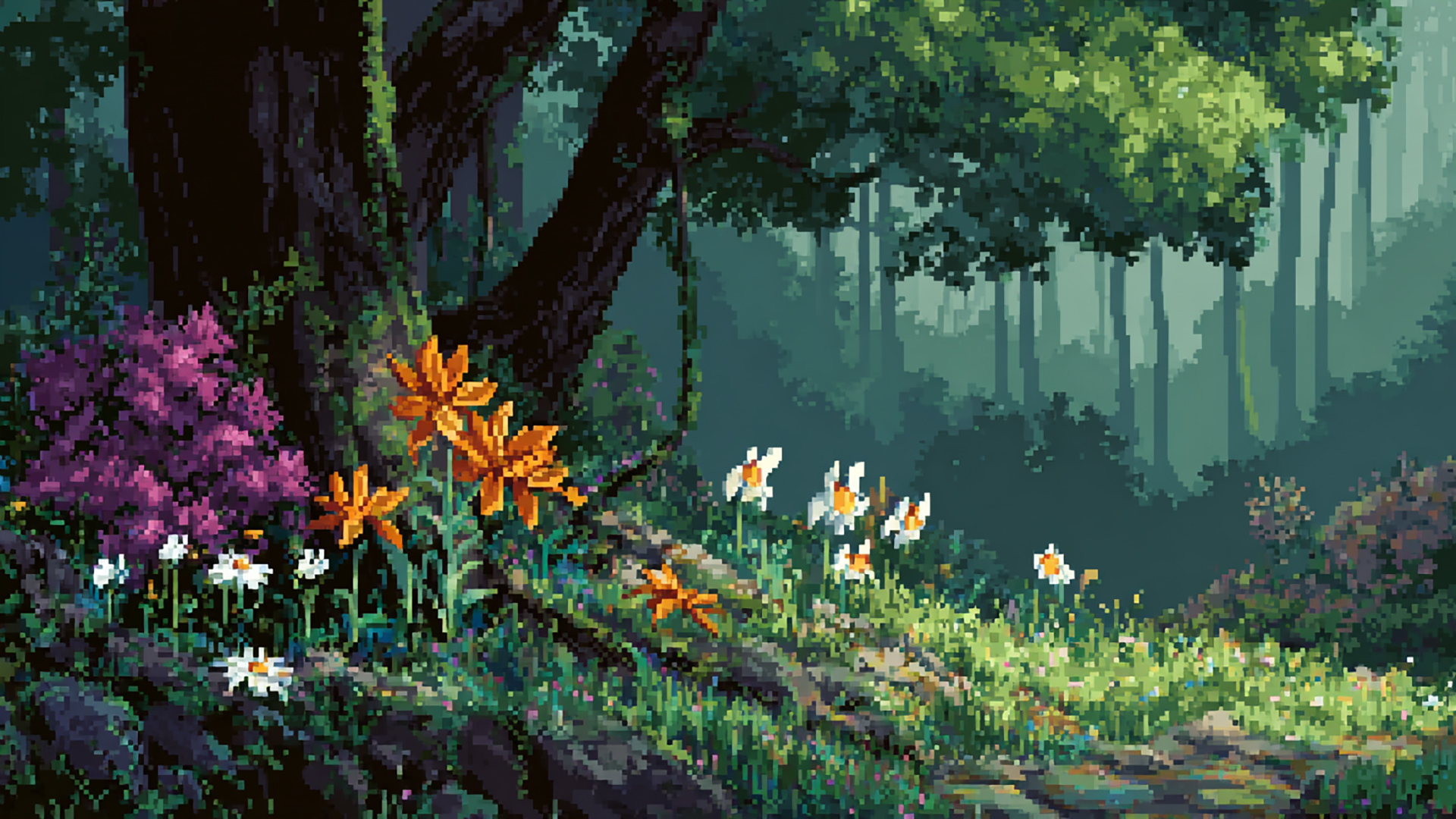 検索キーワード:花, 森, 春, ファンタジー, ドット絵, 自然, flowers, forest, spring, fantasy, pixel art, nature