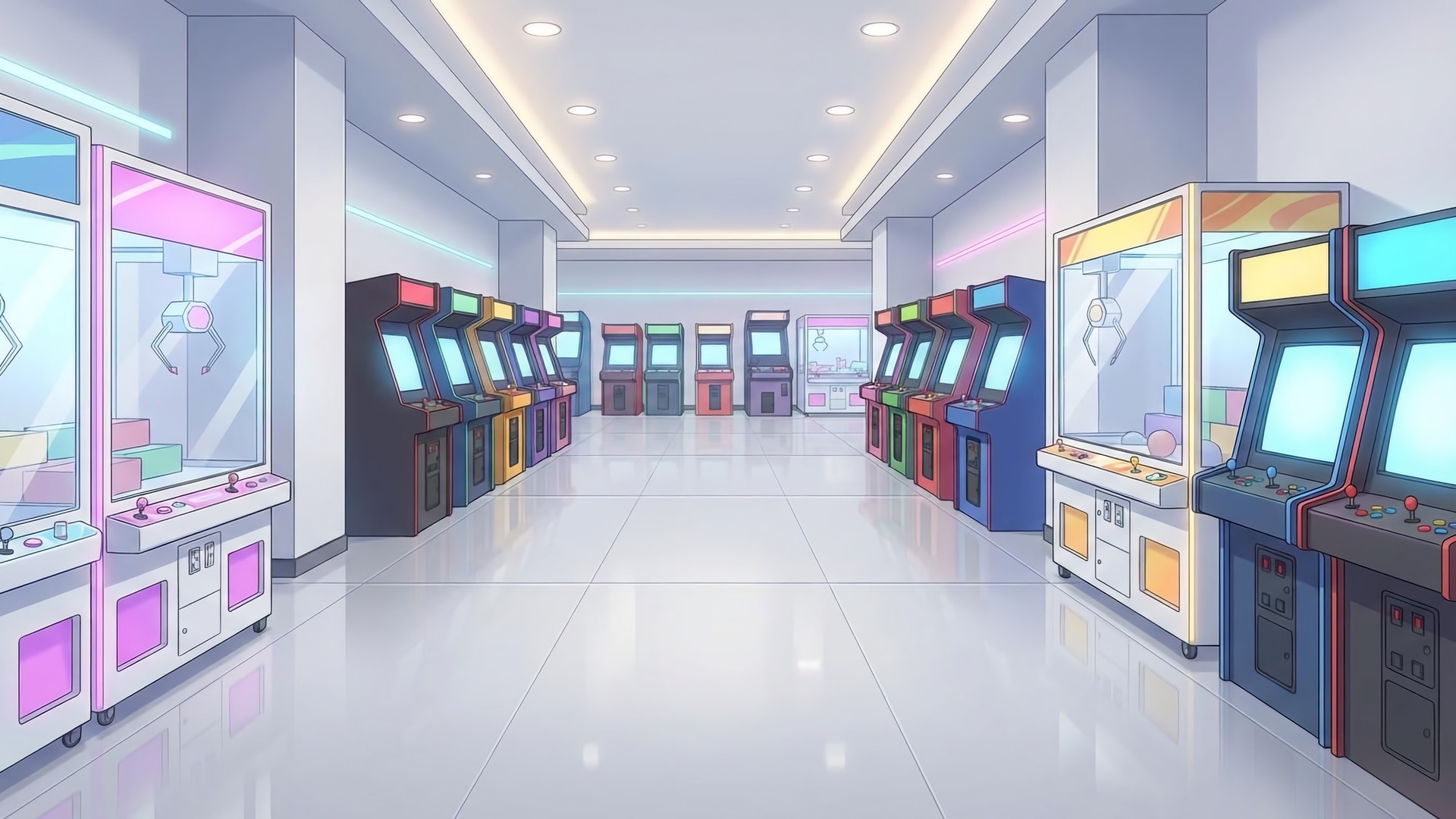 検索キーワード:ゲームセンター, ゲーセン, 明るい, 清潔感, ファミリー向け, デート, アミューズメント, 室内遊び, クレーンゲーム, 娯楽, arcade, game center, bright, amusement, clean, family friendly, gaming, indoor playground, claw machine, entertainment