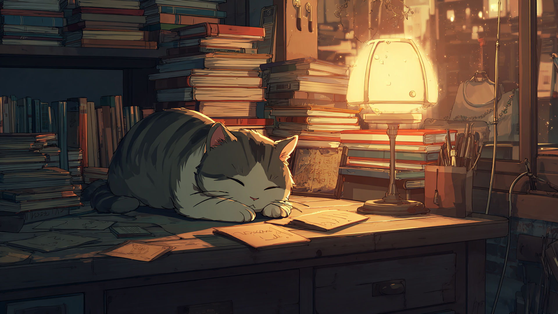 検索キーワード:机,猫,リラックス,室内,日常,静けさ, desk, cat, relax, interior, everyday, calm