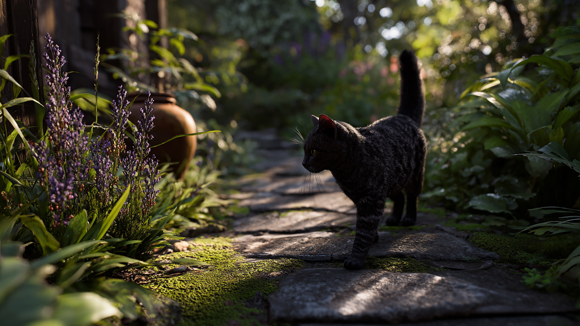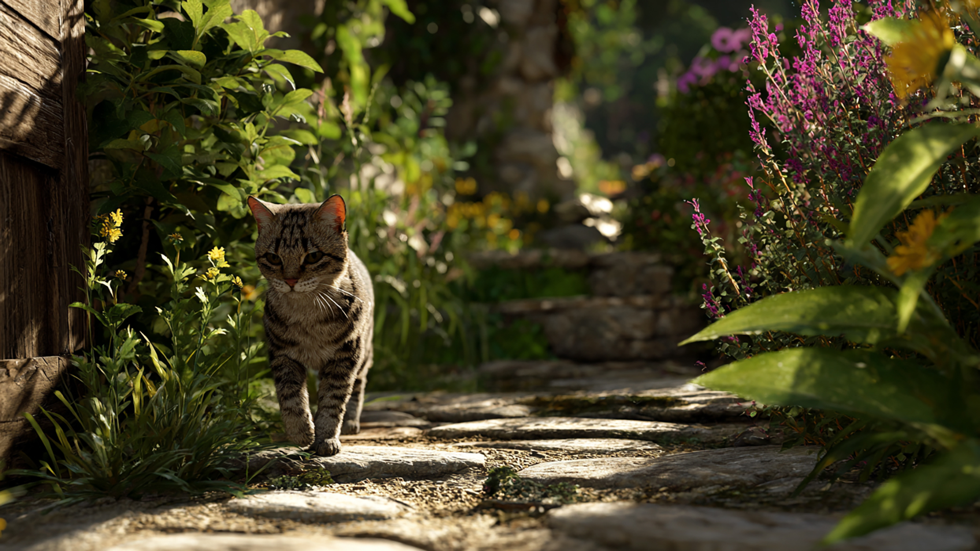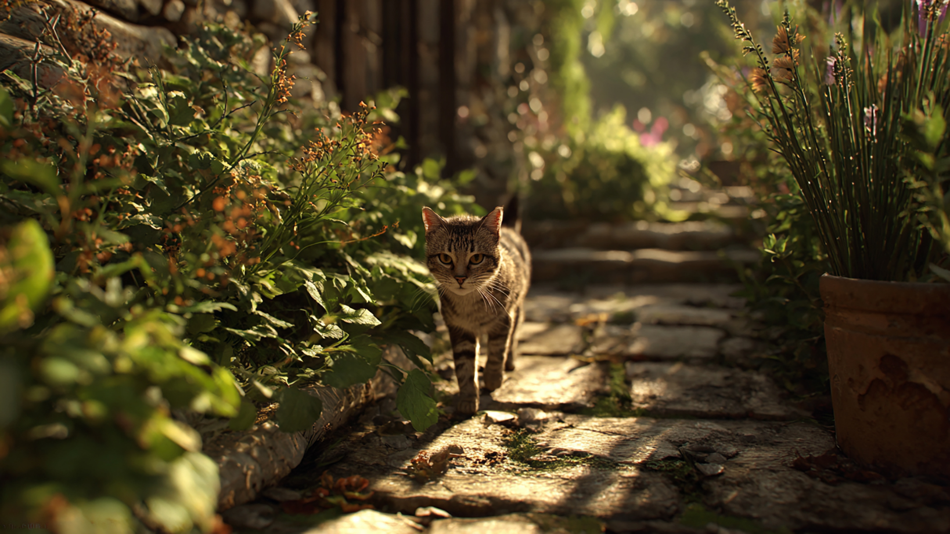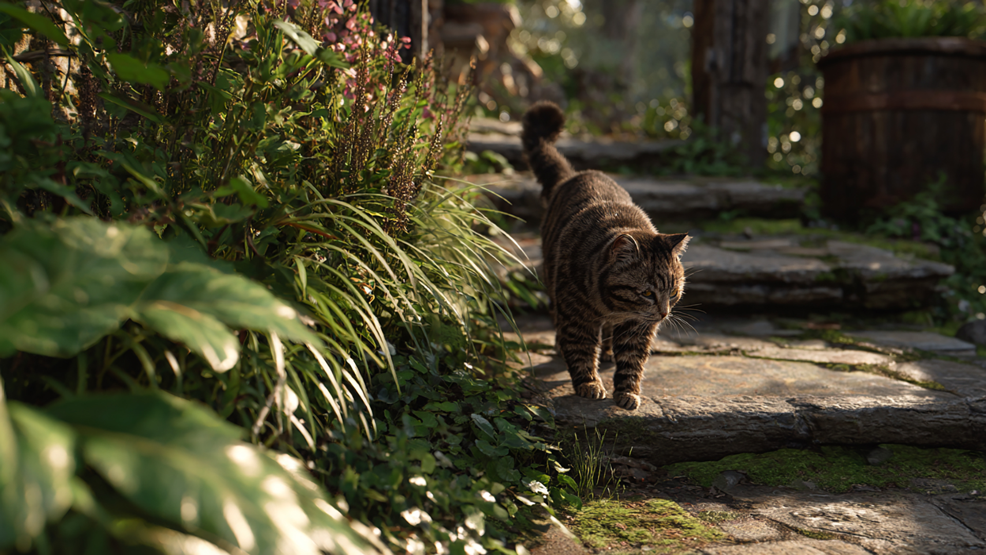 検索キーワード:裏庭, ネコ, 写実風, 光, 自然, 静寂, backyard, cat, realistic, light, nature, silence