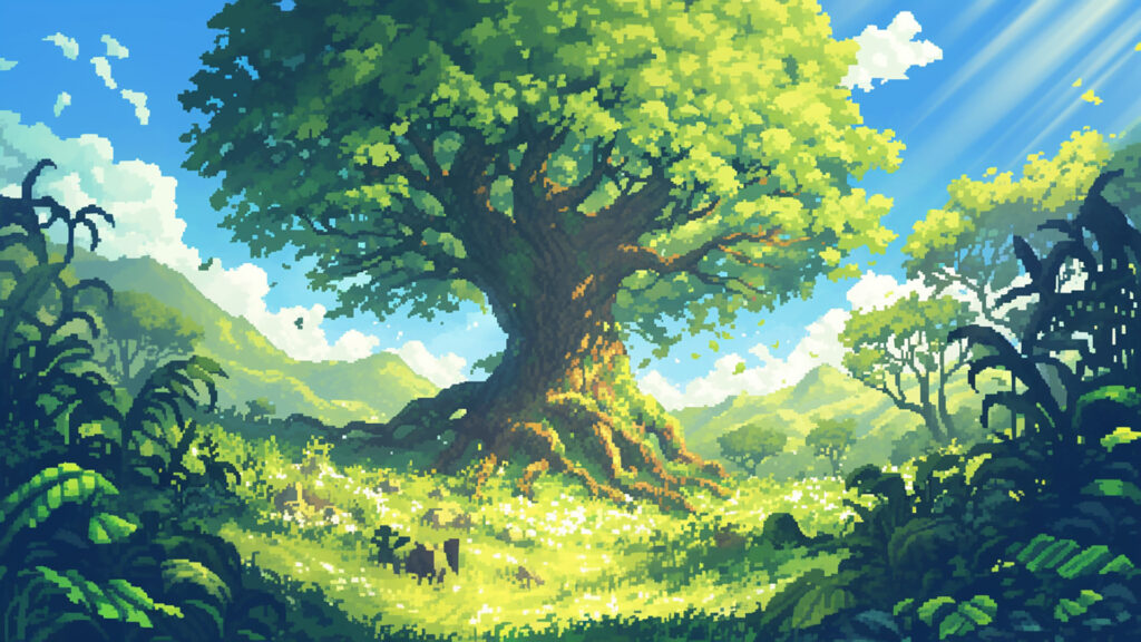 森の中にある一本の巨木|ドット絵風(16枚)