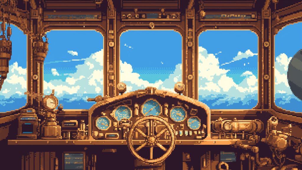 飛行船の操舵室|ドット絵風(4枚)