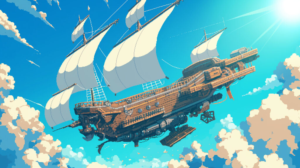 飛行船の外観|ドット絵風(4枚)
