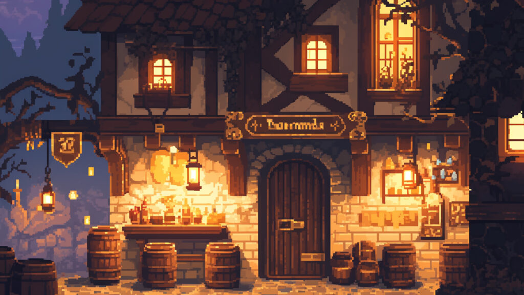 酒場の外観|ドット絵風(3枚)