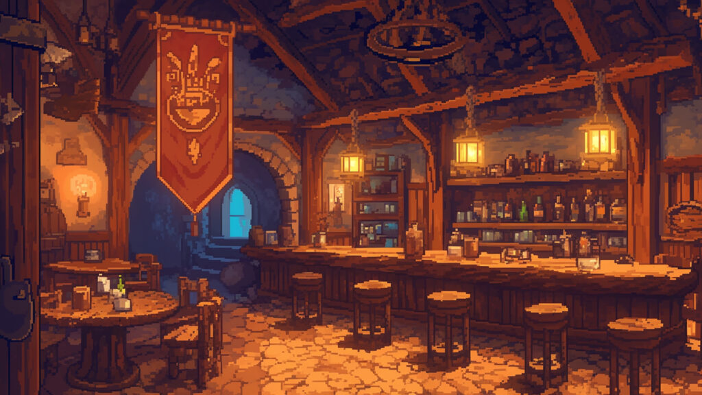 酒場の内観|ドット絵風(4枚)