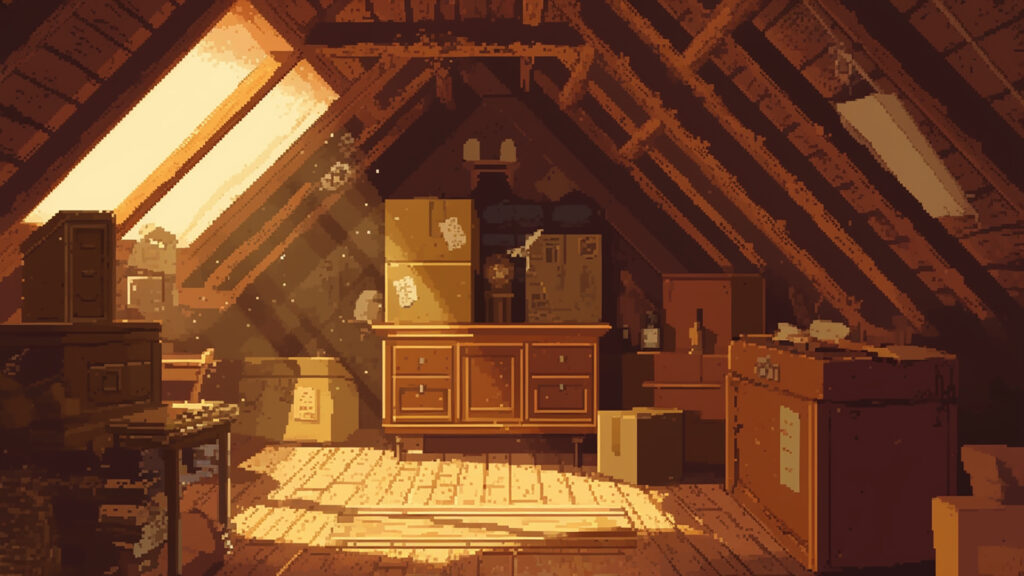 お屋敷の屋根裏部屋|ドット絵風(4枚)