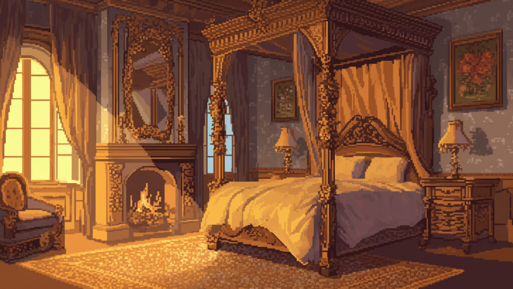 お屋敷の寝室|ドット絵風(4枚)