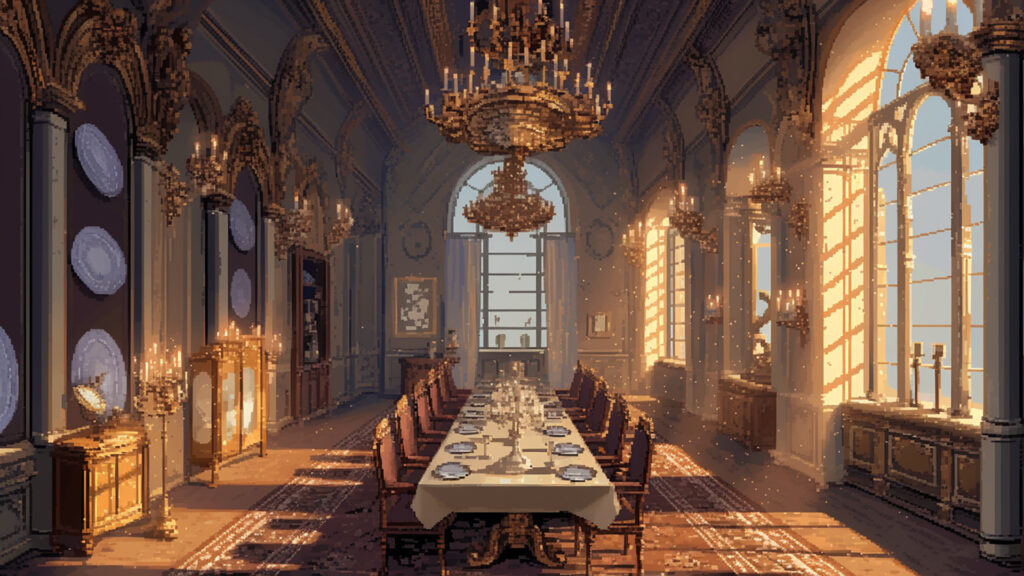 お屋敷のダイニングルーム|ドット絵風(4枚)