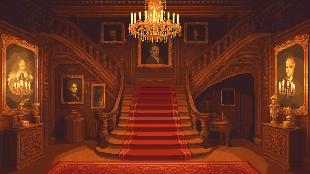 お屋敷のエントランス|ドット絵風(4枚)