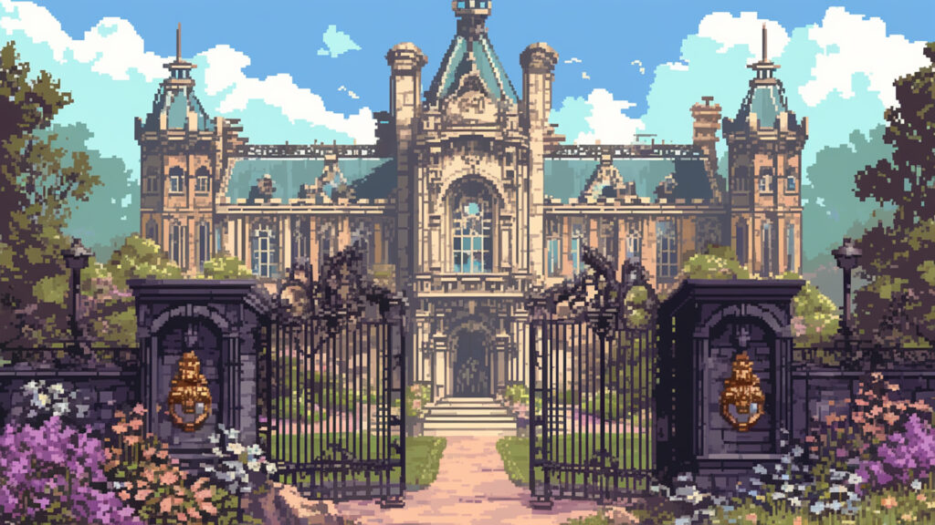 お屋敷の外観|ドット絵風(8枚)