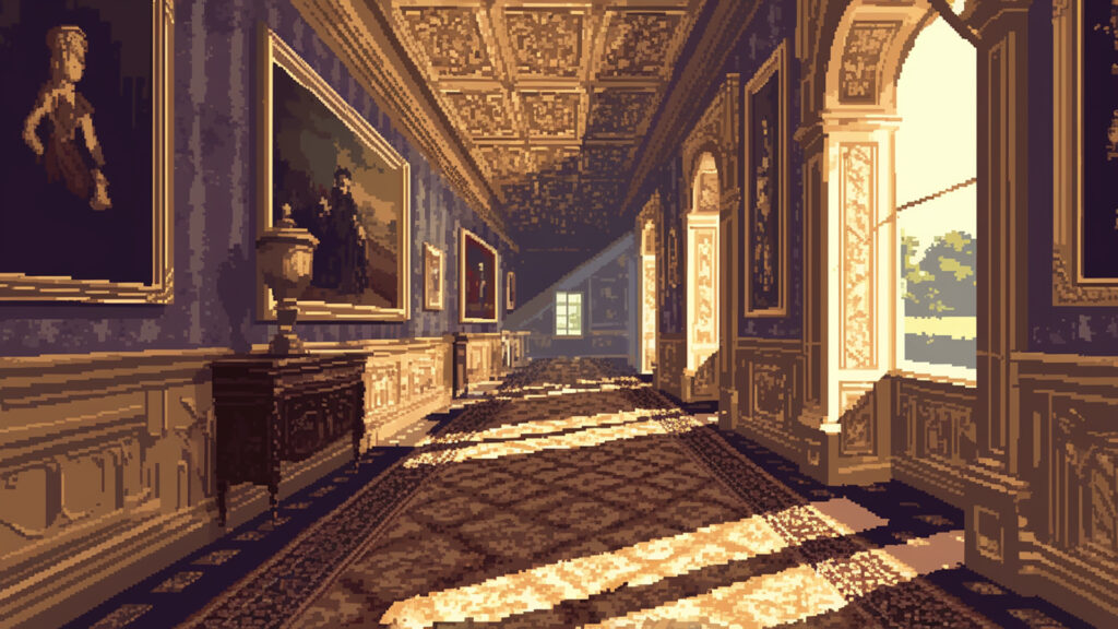 お屋敷の廊下|ドット絵風(4枚)
