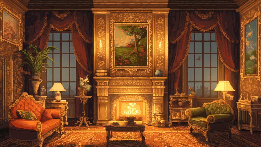 お屋敷の応接室|ドット絵風(4枚)
