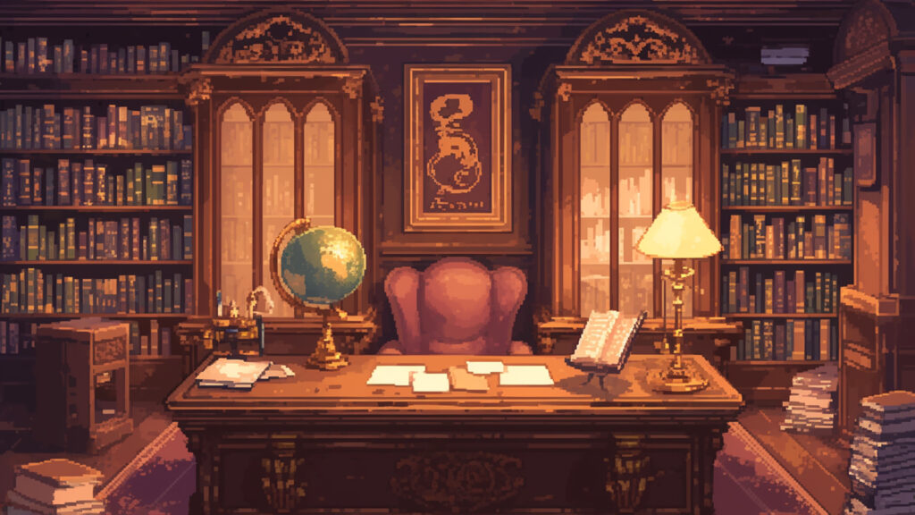 お屋敷の書斎|ドット絵風(4枚)