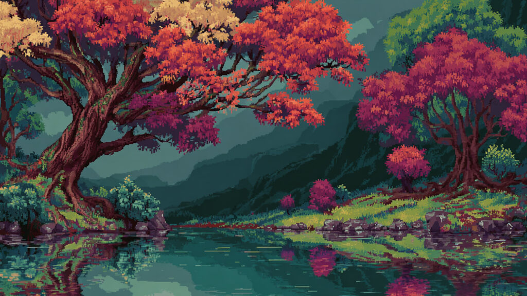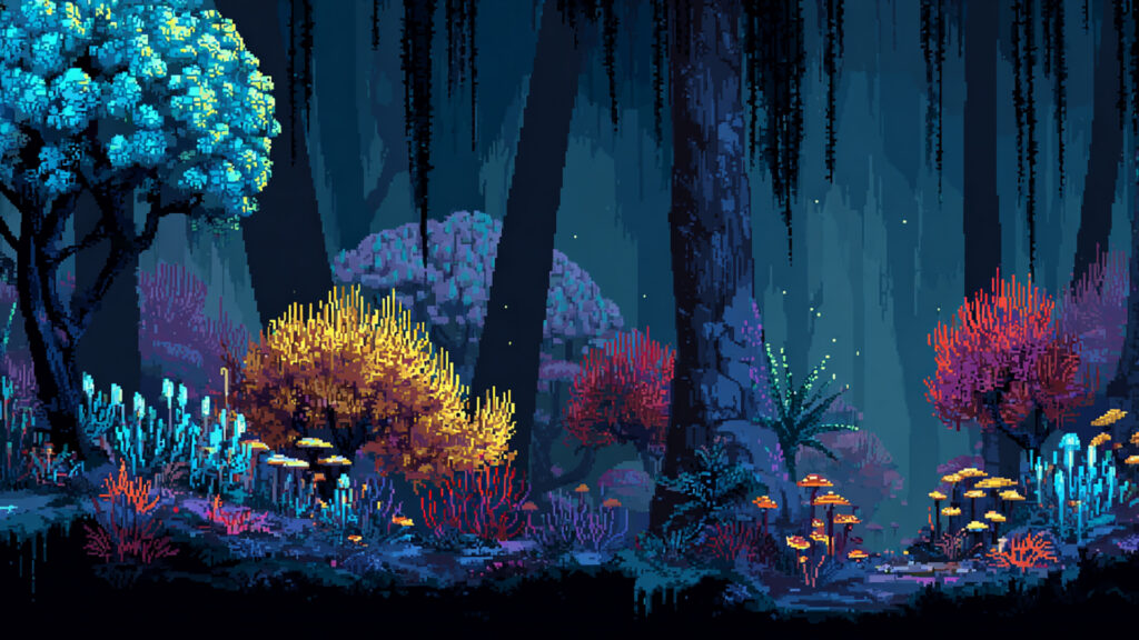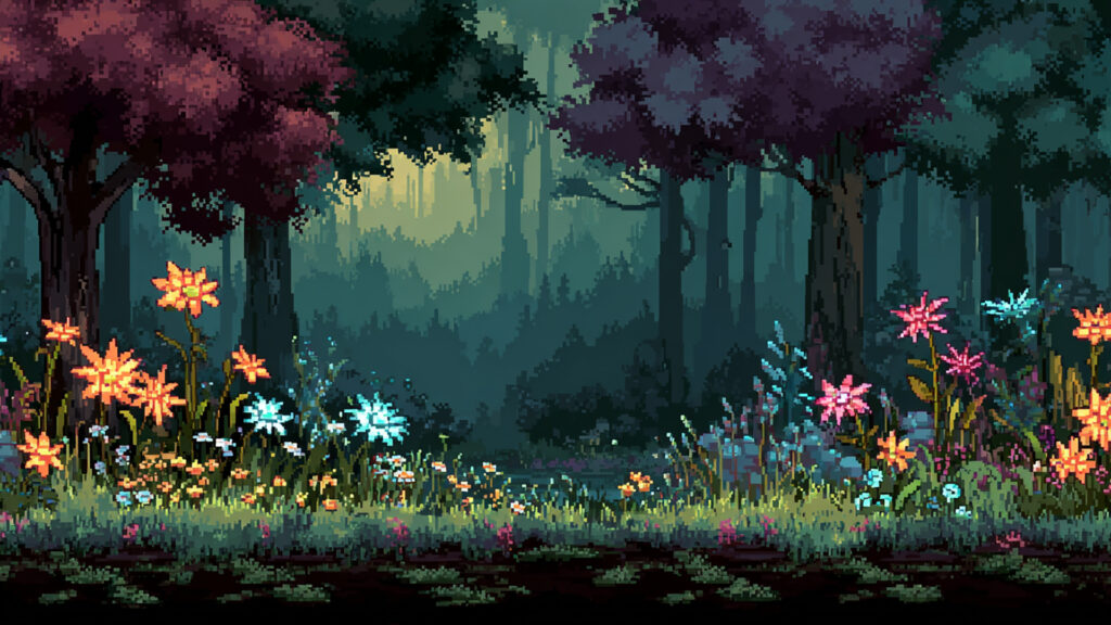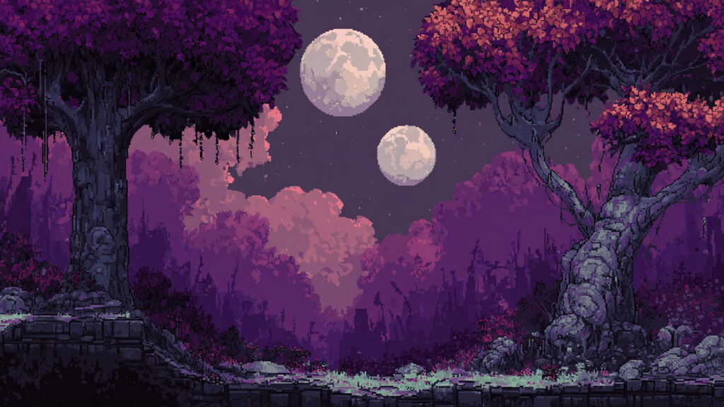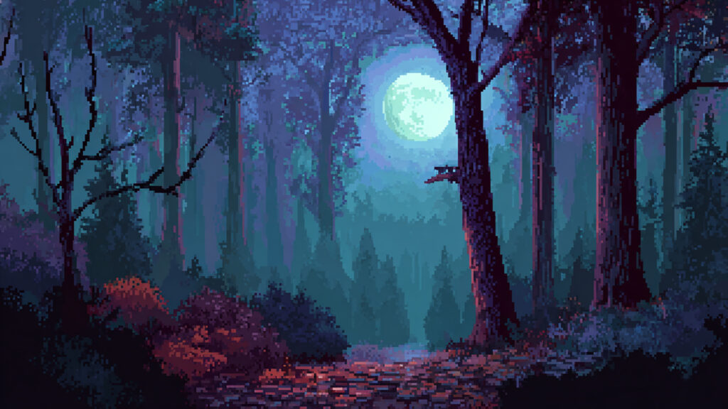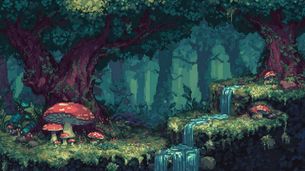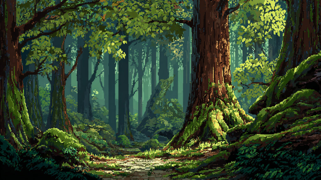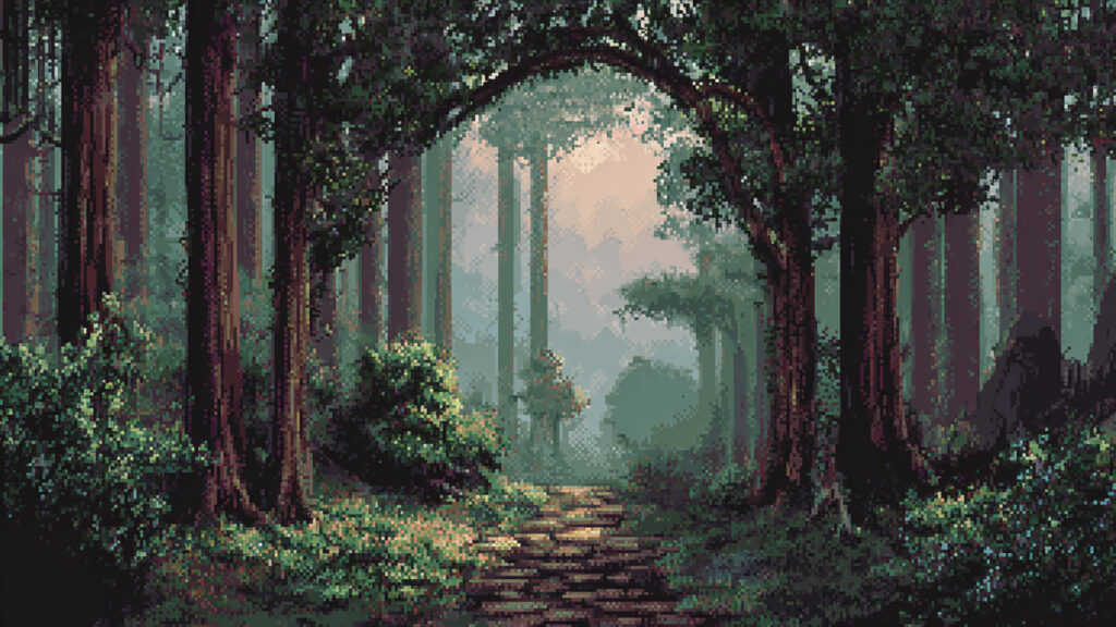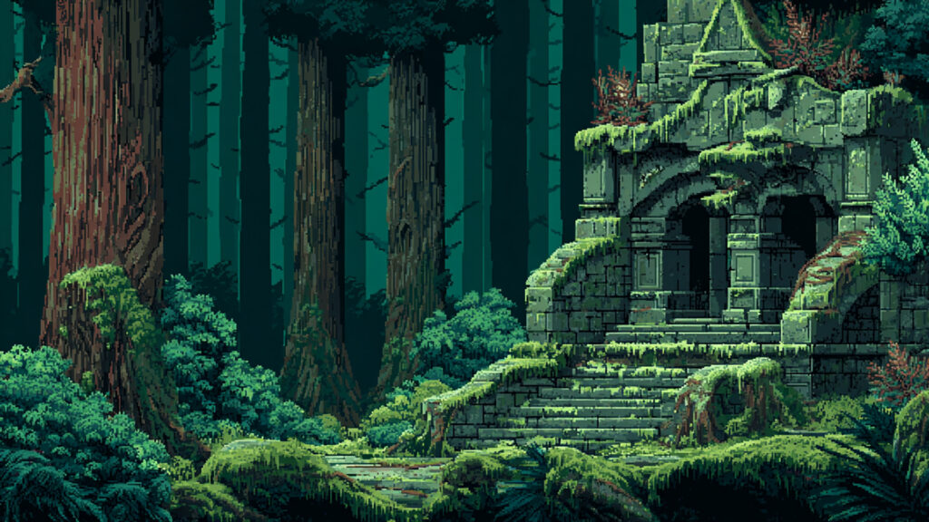 苔むした古代遺跡の森|ドット絵風(4枚)
