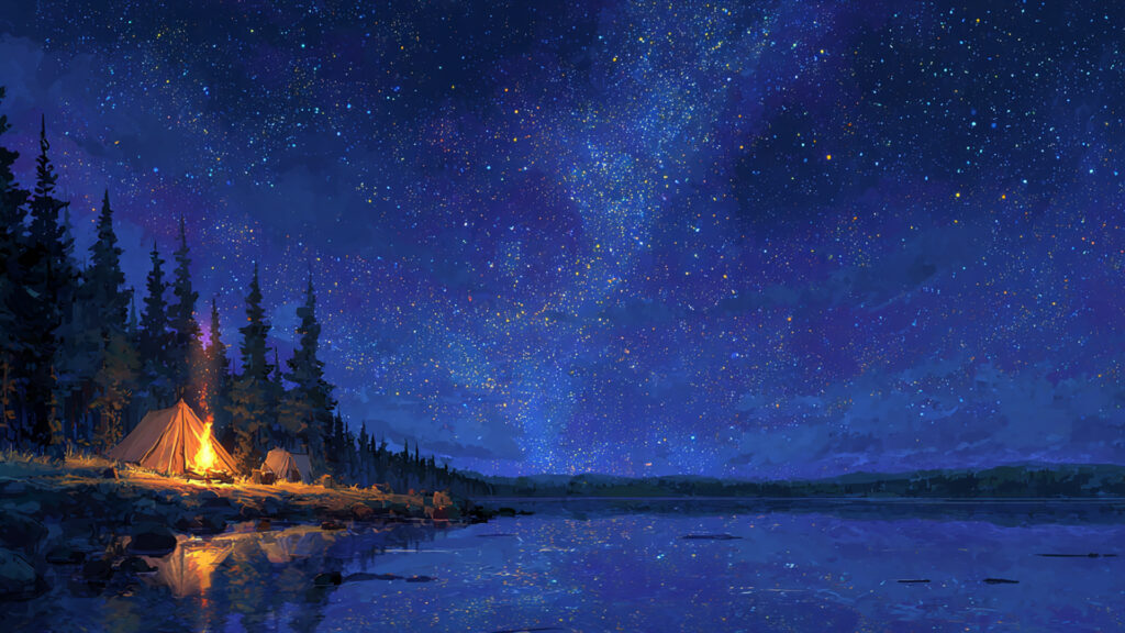 湖畔のキャンプと星空|ファンタジー・冒険・旅の休息(3枚)