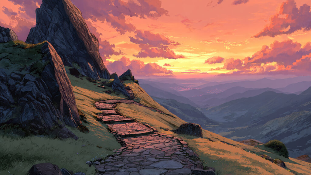 山道の峠と夕暮れ|ファンタジー・冒険・旅路(3枚)