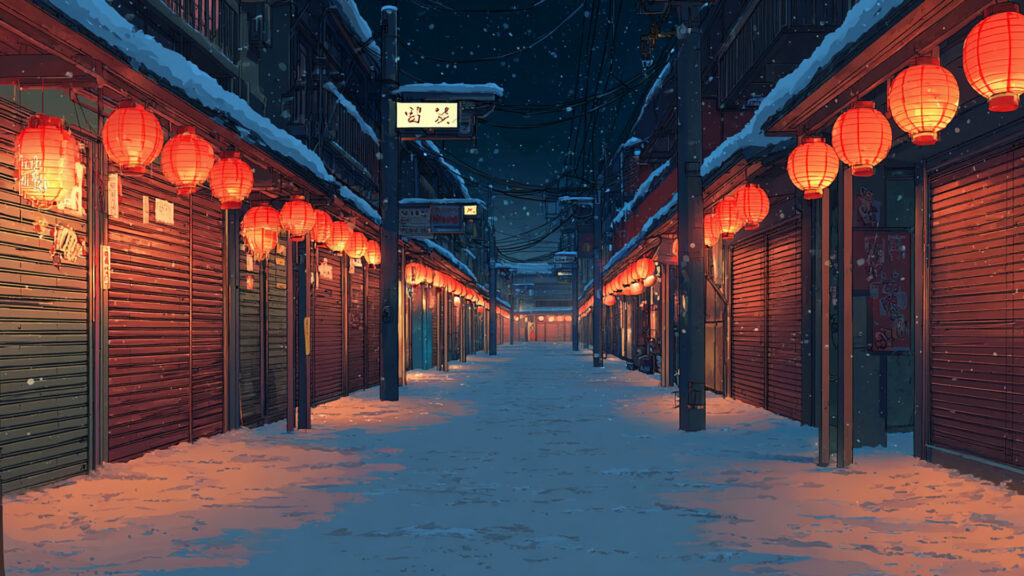 大晦日の商店街|提灯が灯る冬の夜(3枚)