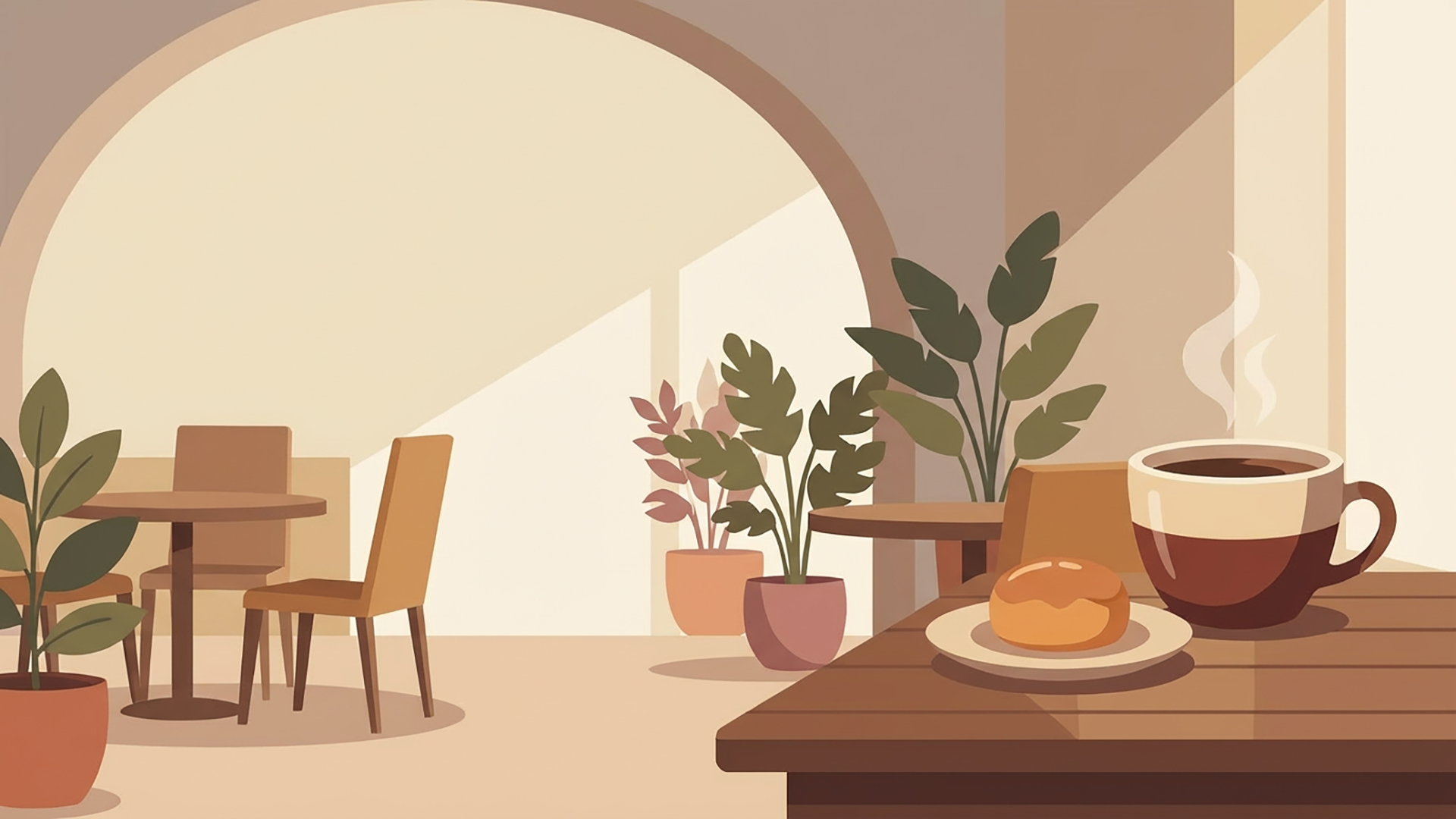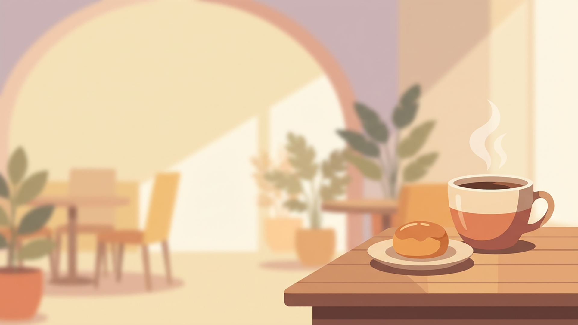 検索キーワード:VTuber, カフェ, 雑談, コーヒー, テーブル, 左余白, vtuber, cafe, chat, coffee, table, whitespace