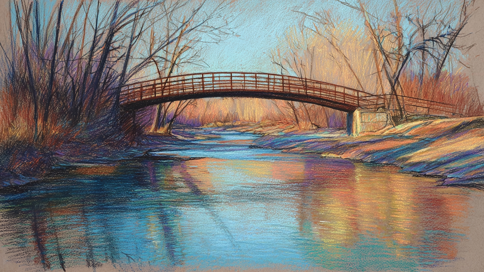 検索キーワード:色鉛筆, 橋, 川辺, 手描き, 風景, 柔らかい, coloredpencil, bridge, riverside, handdrawn, scenery, soft