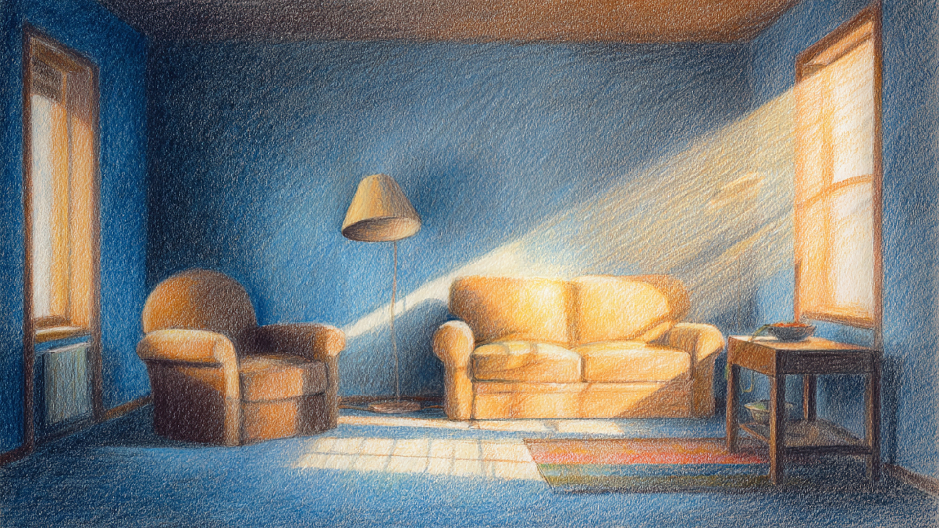 色鉛筆風-室内背景素材|手描き風部屋テクスチャ(3枚)