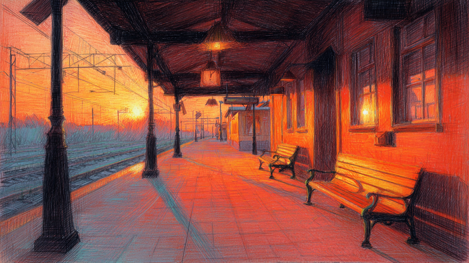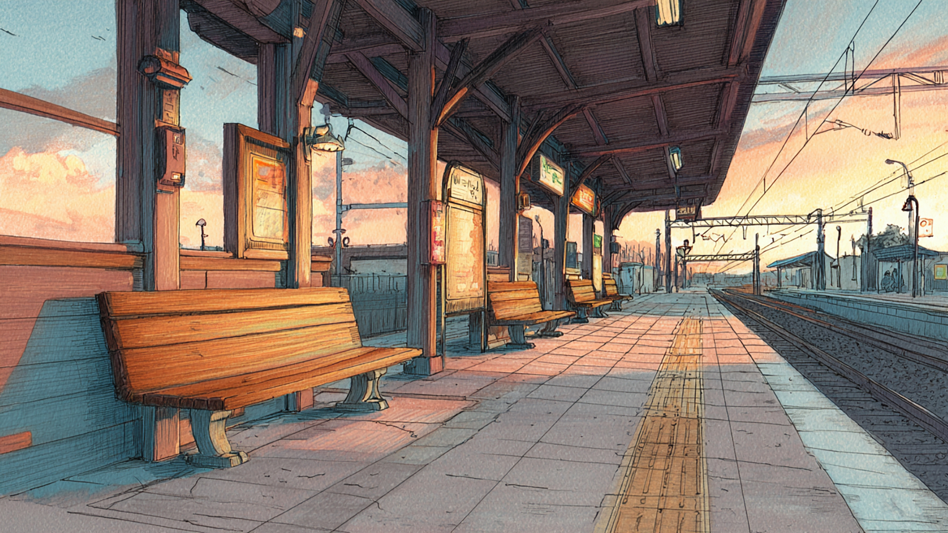 検索キーワード:色鉛筆, 駅ホーム, 手描き, 風景, 線画, 柔らかい, coloredpencil, stationplatform, handdrawn, scenery, lineart, soft