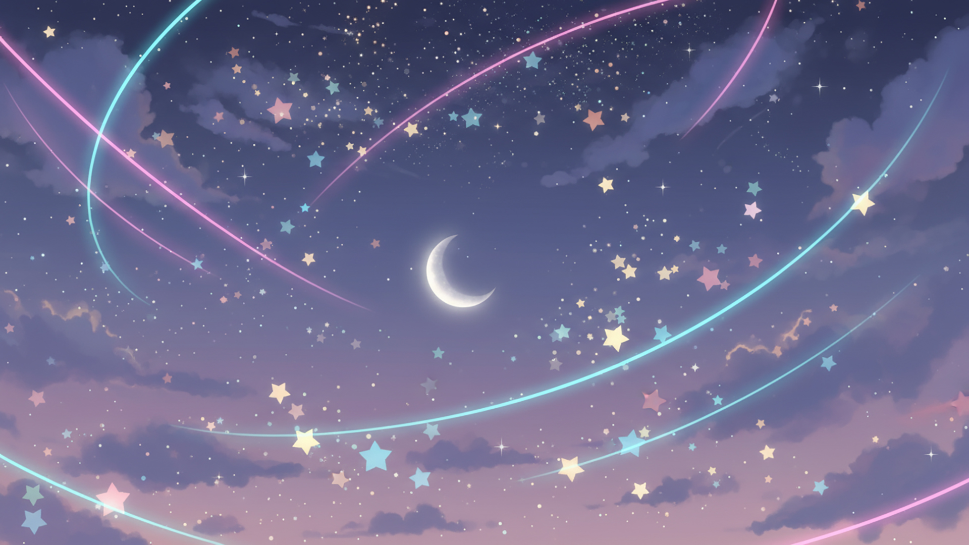 検索キーワード:ゆめかわ, ネオン, 星空, 背景, パステル, ファンシー, Neon, Starry, Kawaii, Aesthetic, Dreamy, Background
