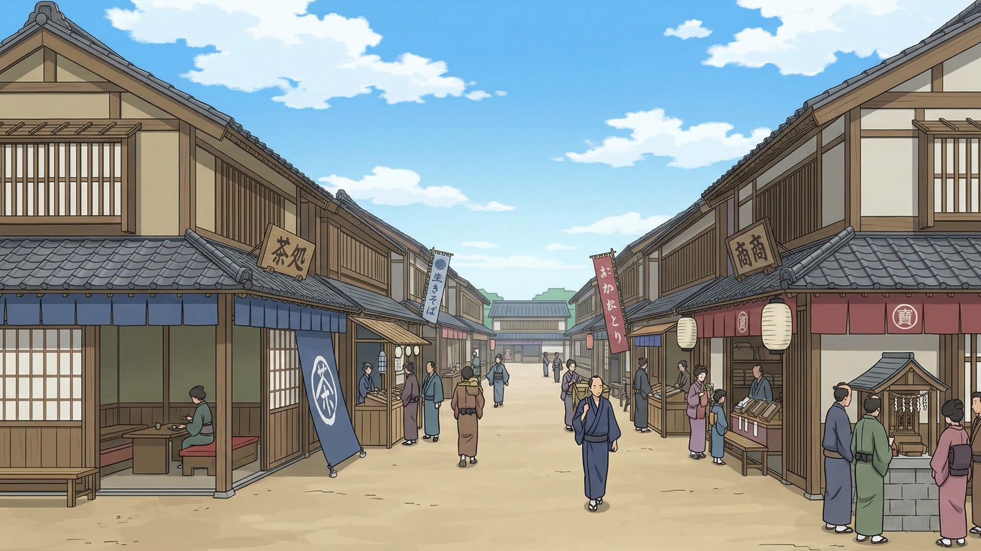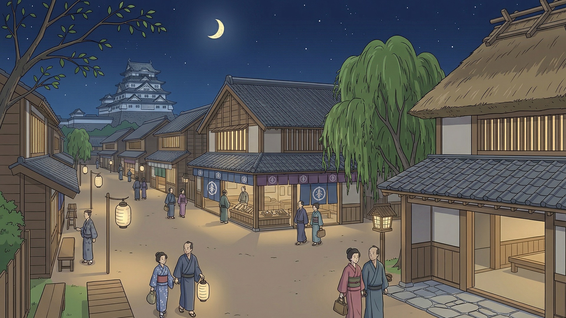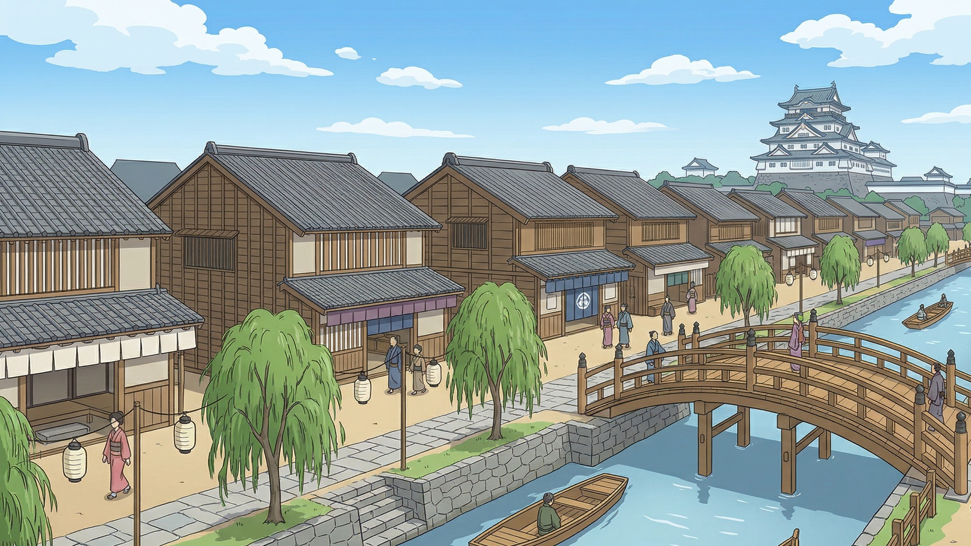 検索キーワード:江戸時代, 街並み, 歴史, 時代劇, 浮世絵, 江戸文化, 町人, 江戸城, 風情, 再現, Edo period, streetscape, history, samurai era, Ukiyo-e, traditional architecture, old Japan, historical district, Edo town, Japanese culture