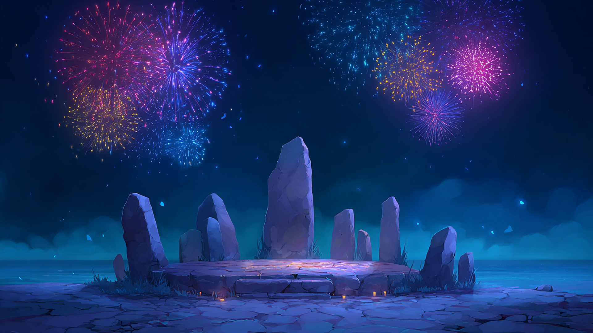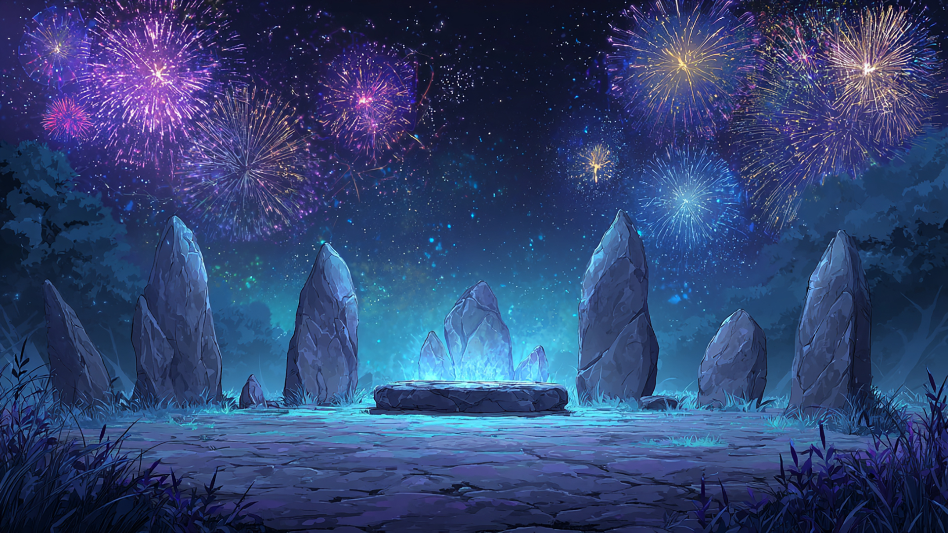 検索キーワード:ファンタジー, 祭壇, 夜空, 花火, 魔法陣, 神秘, fantasy, altar, night sky, fireworks, magic circle, mystical