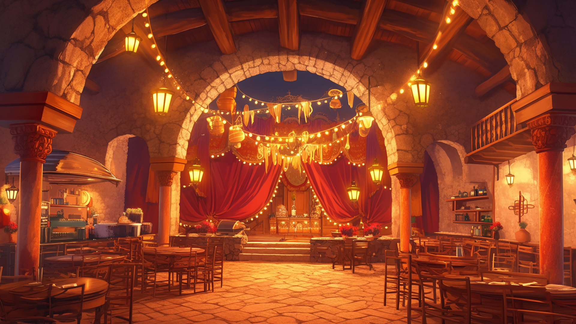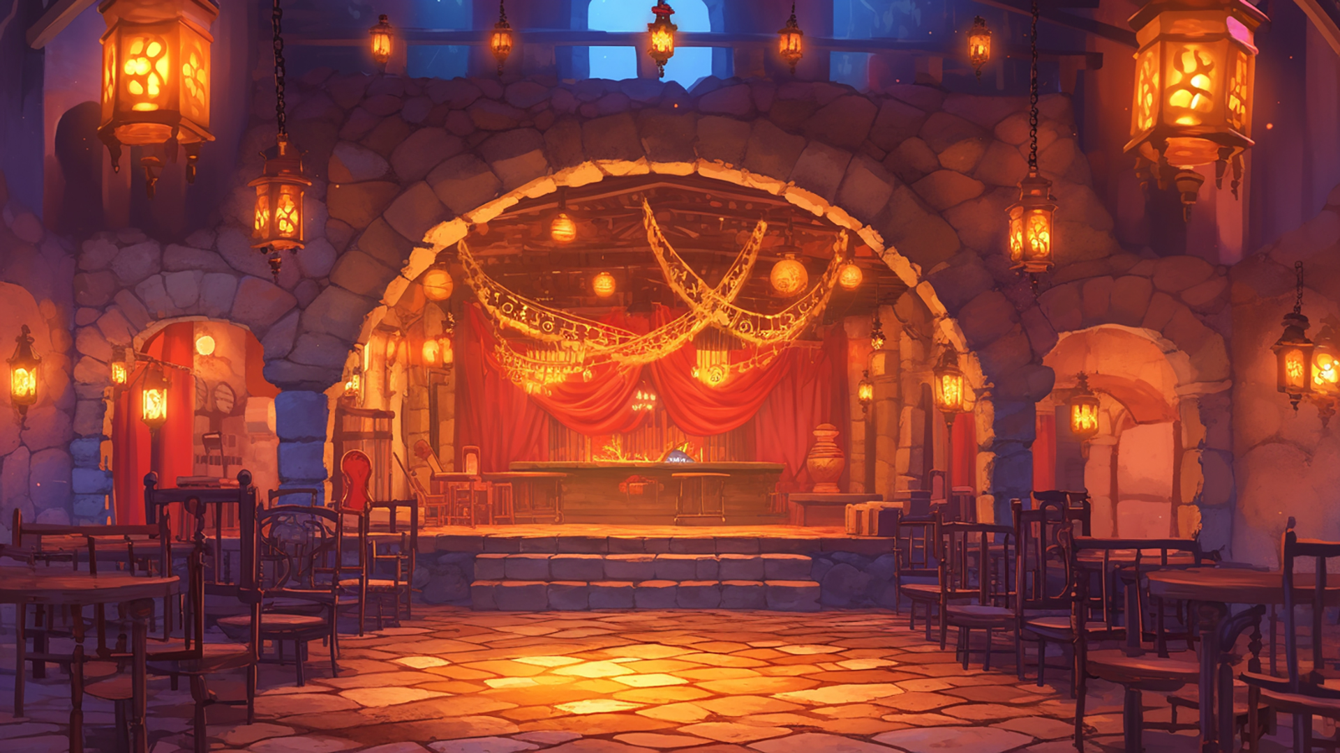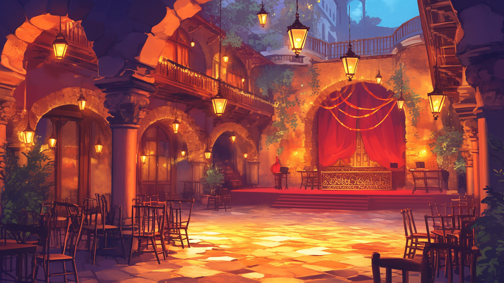 検索キーワード:バルセロナ旧街, フラメンコバー, 路地, 石畳, 夜景, 伝統, Barcelona old town, flamenco bar, alley, cobblestone, nightscape, tradition