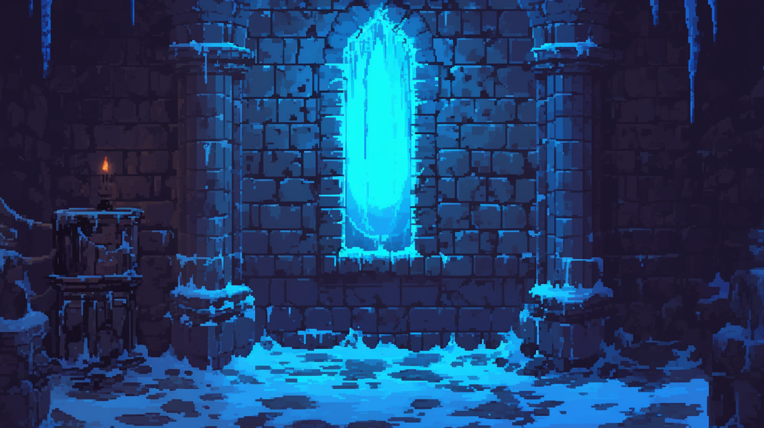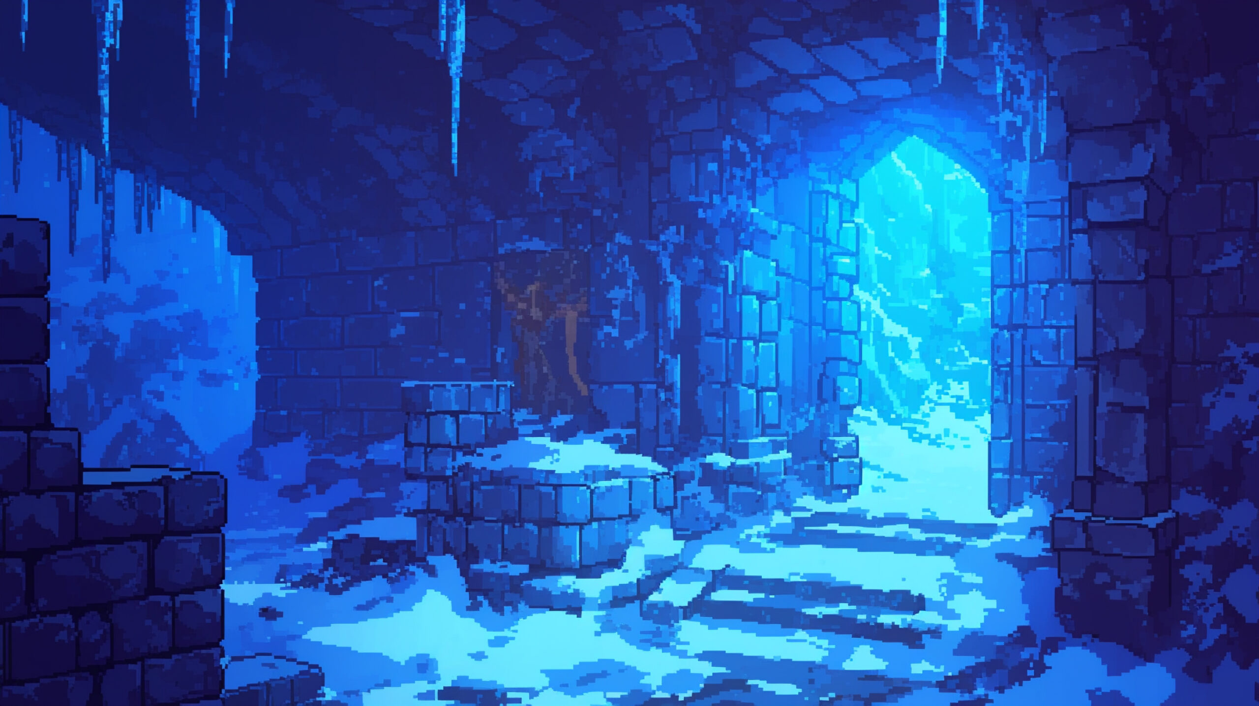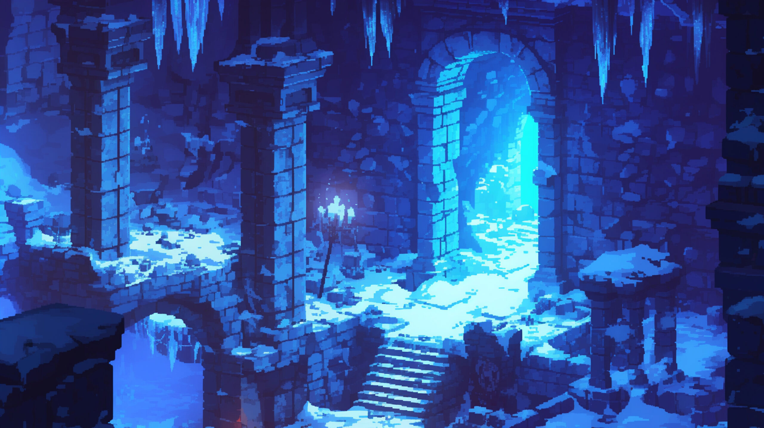 検索キーワード:凍りついた, 廃墟, 氷, 静寂, ファンタジー, ドット絵, frozen, ruins, ice, silence, fantasy, pixel art