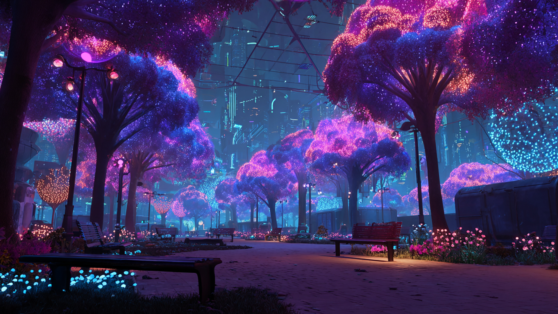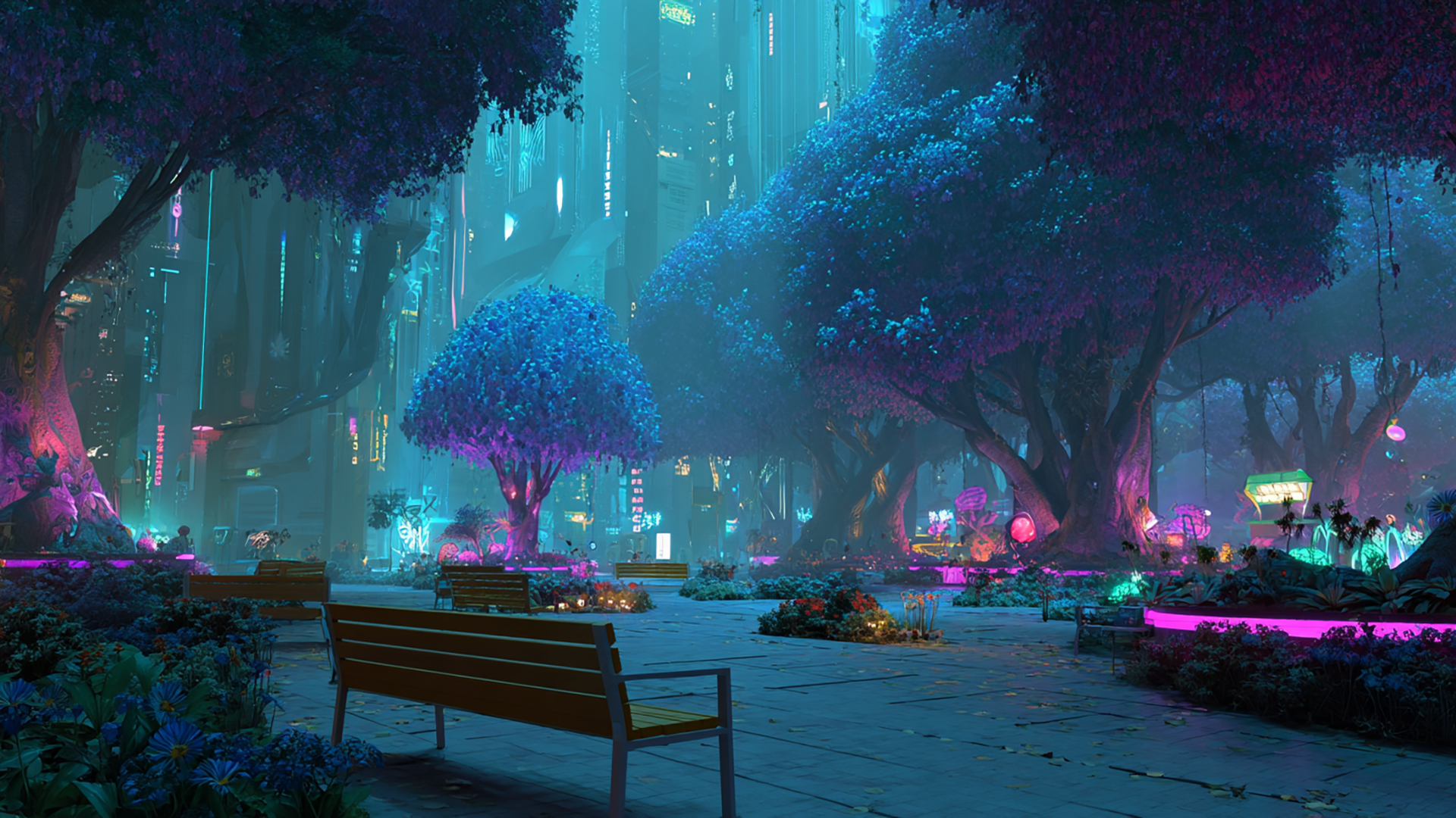 検索キーワード:未来, 公園, 自然, テクノロジー, 調和, 静けさ, future, park, nature, technology, harmony, tranquility