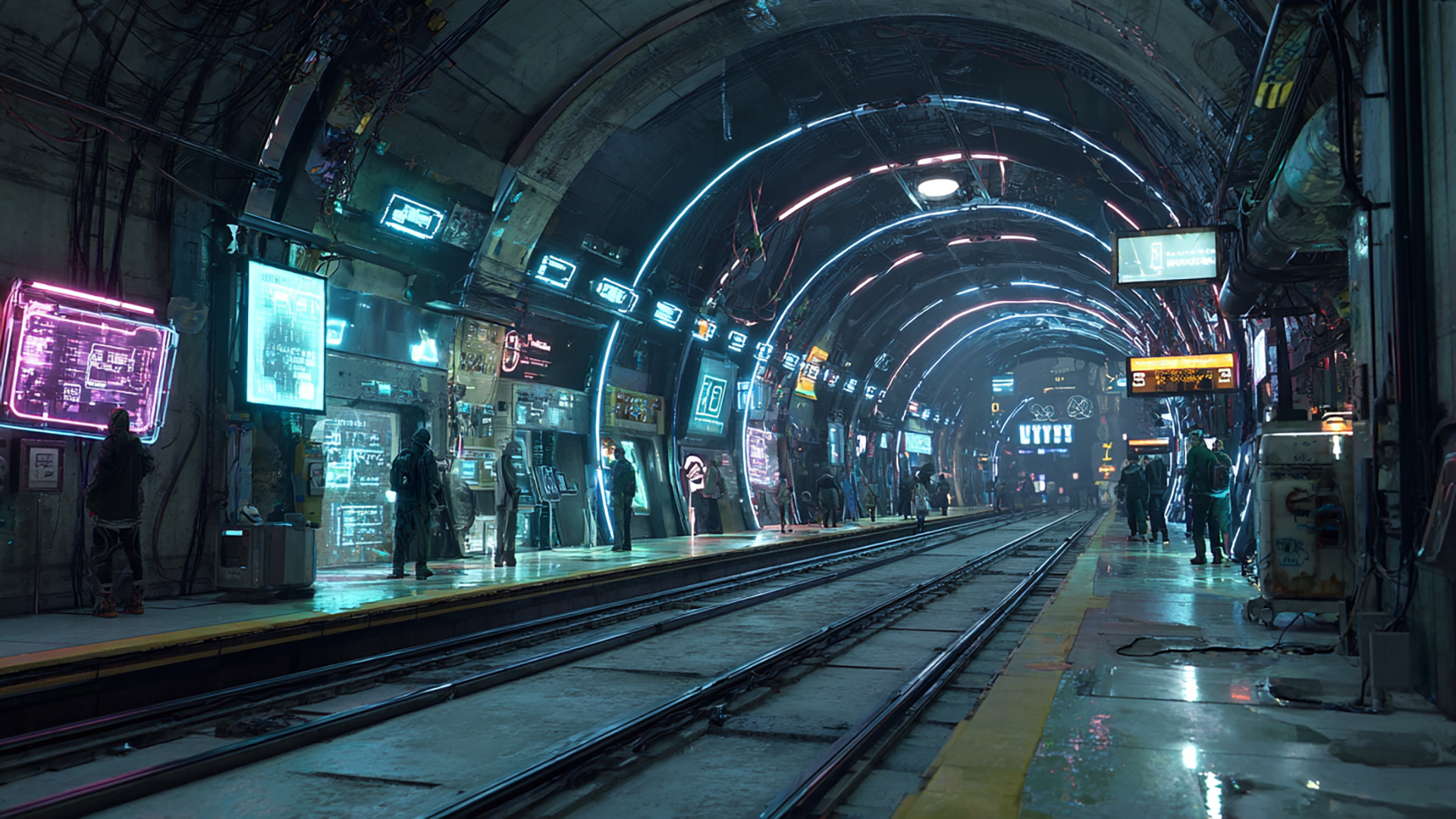 検索キーワード:未来, 地下鉄駅, 鉄道, ネオン, 近未来, 都市, future, subway station, railway, neon, futuristic, city